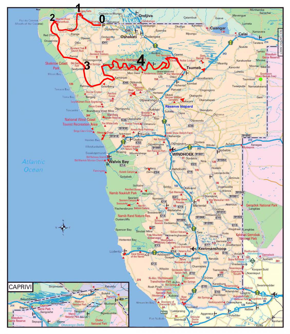 Nous arrivons au camp Hobatere à la Galton gate du park. Nous y rentrerons demain matin tranquillement. Etosha se savoure doucement .
