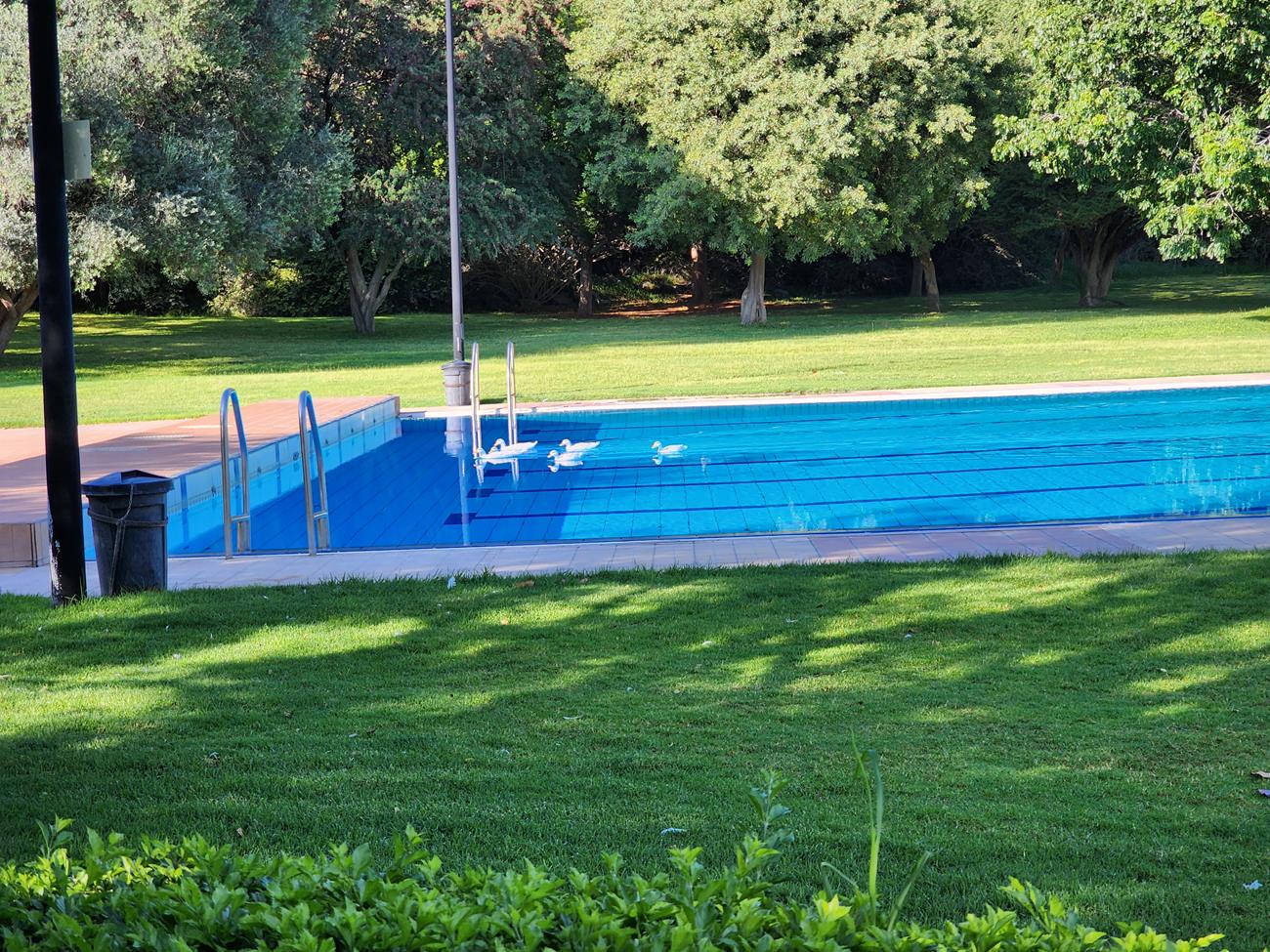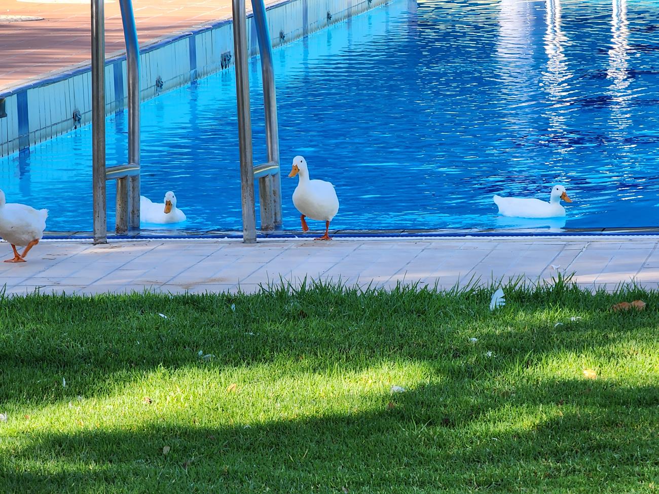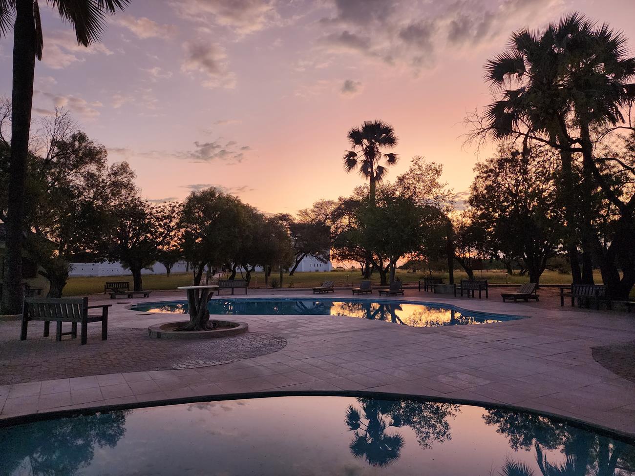 Tsumeb, nous prenons un lodge car la Toy sera au garage des demain. Ici , tout va bien les canards font leur longueur dans une belle piscine.