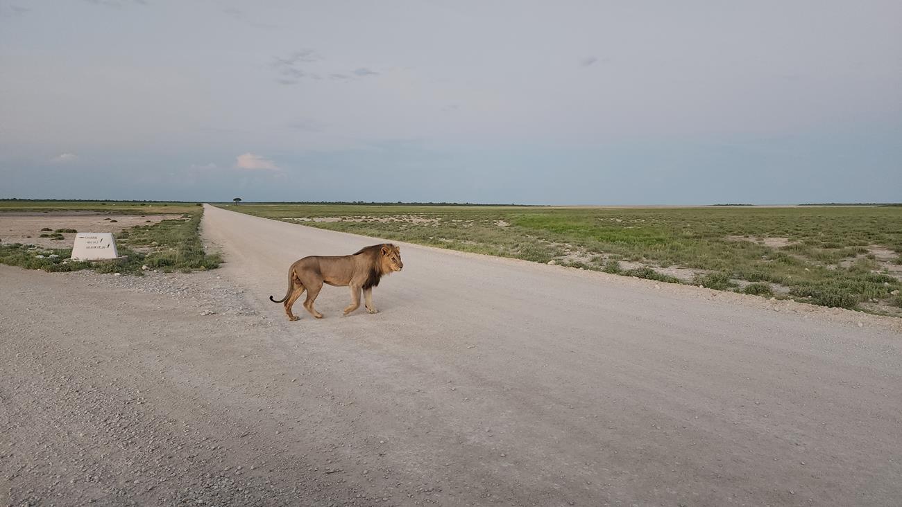 Et en bordure de piste, un magnifique lion qui défend son territoire car il y en a un autre à environ 300 m.
