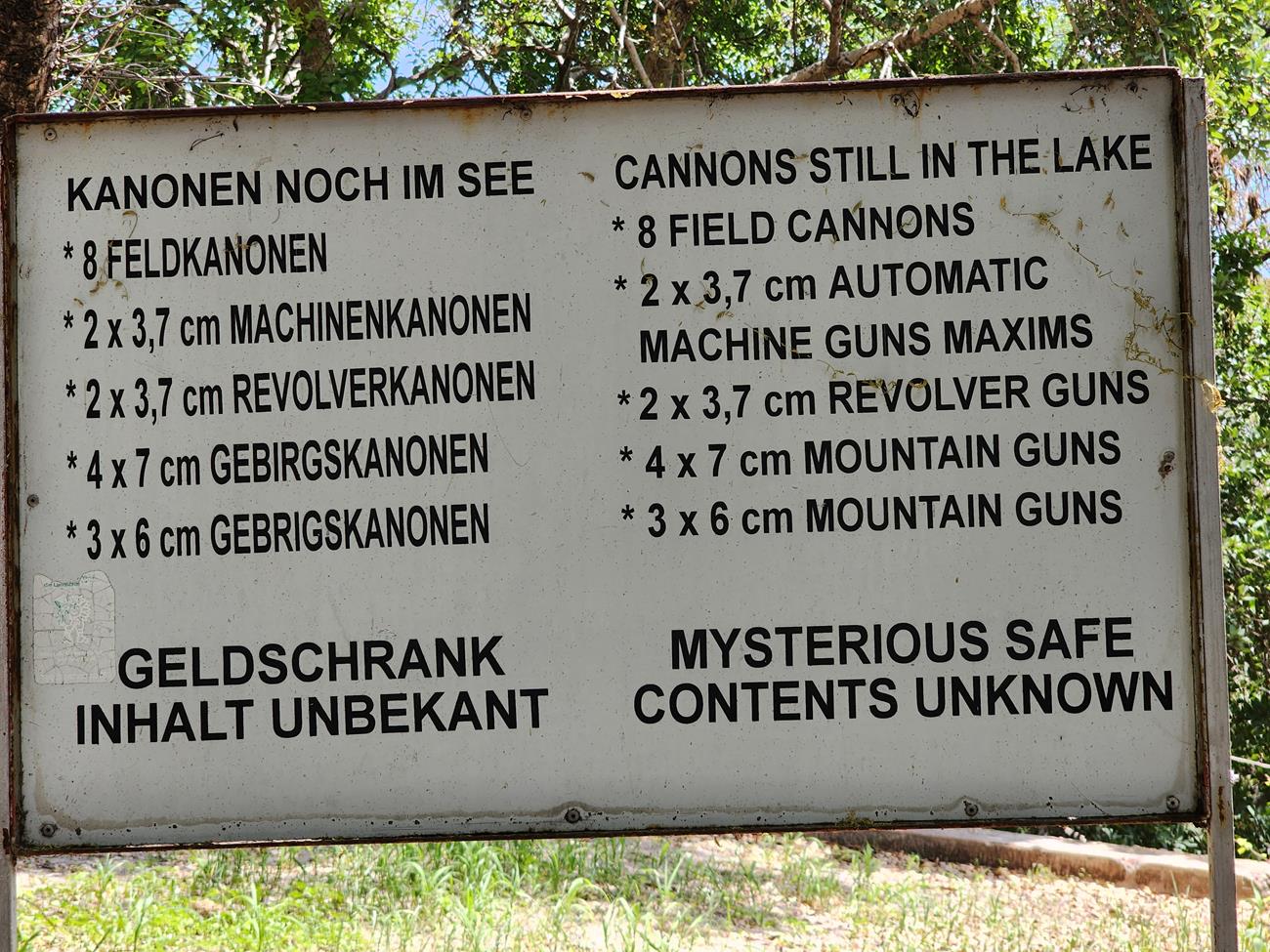 Durant la Première Guerre mondiale, les troupes coloniales allemandes jetèrent dans le lac, le 9 juillet 1915, leurs armements (canons, fusils, munitions) avant de se rendre aux troupes britanniques et sud-africaines. Une grande partie fut récupérée en 1984 et exposée depuis au musée de Tsumeb, mais il reste toujours deux canons dans ses eaux, que les plongeurs peuvent approcher avec autorisation