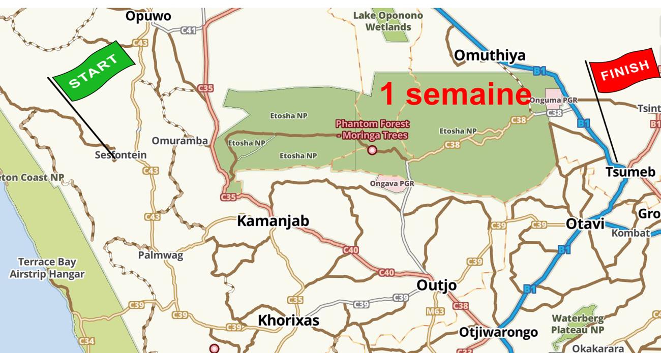 Direction Tsumeb pour aller au garage Toyota et remplacer les goujons du nez de pont cassés.