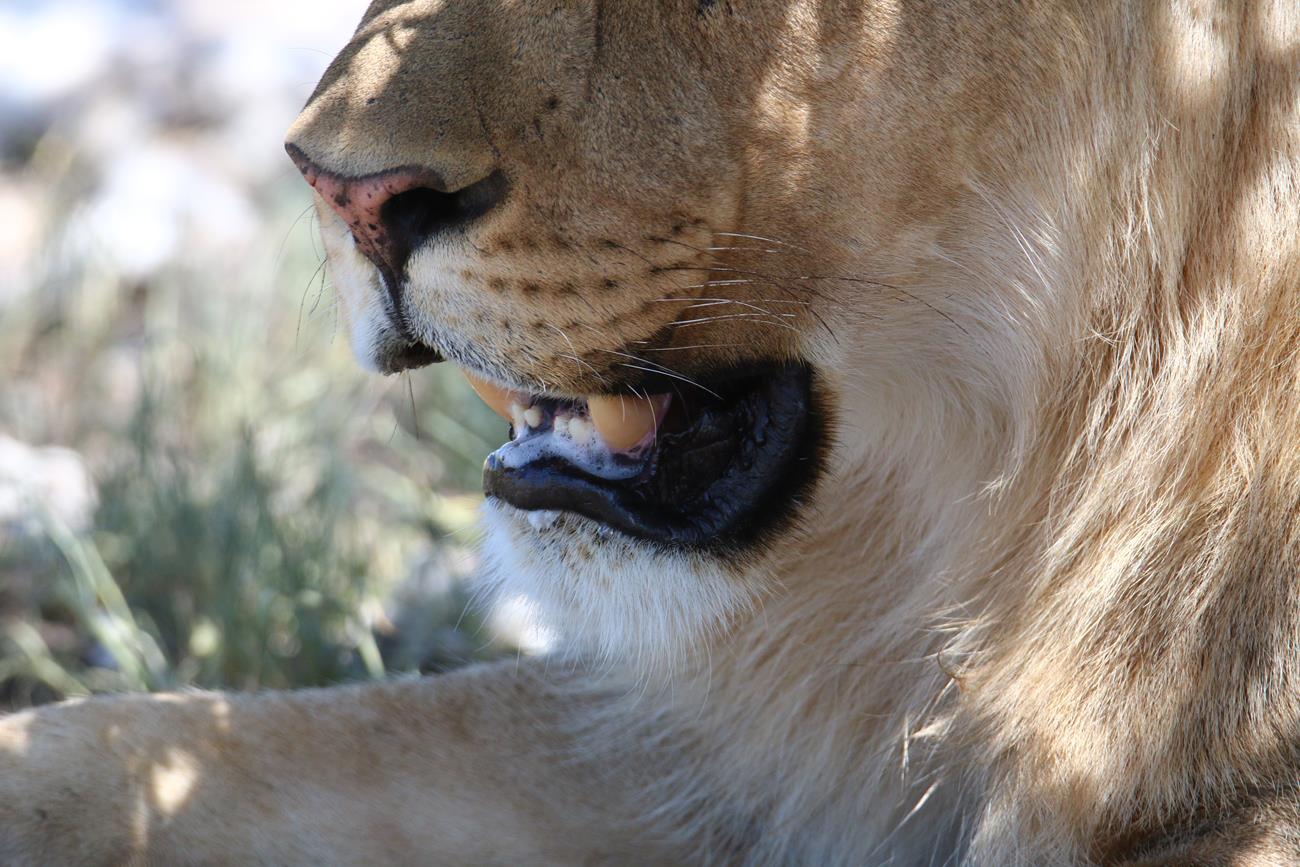 Nous sommes à +/- 1.50 m de lui et c’est toujours aussi grisant de le voir. Contrairement aux autres félins, le lion est un animal grégaire. Il vit environ entre 7 et 12 ans pour le mâle et 14 à 20 ans pour la femelle. Vitesse de pointe 80 km/h sur une très courte distance c’est quand même pas mal !