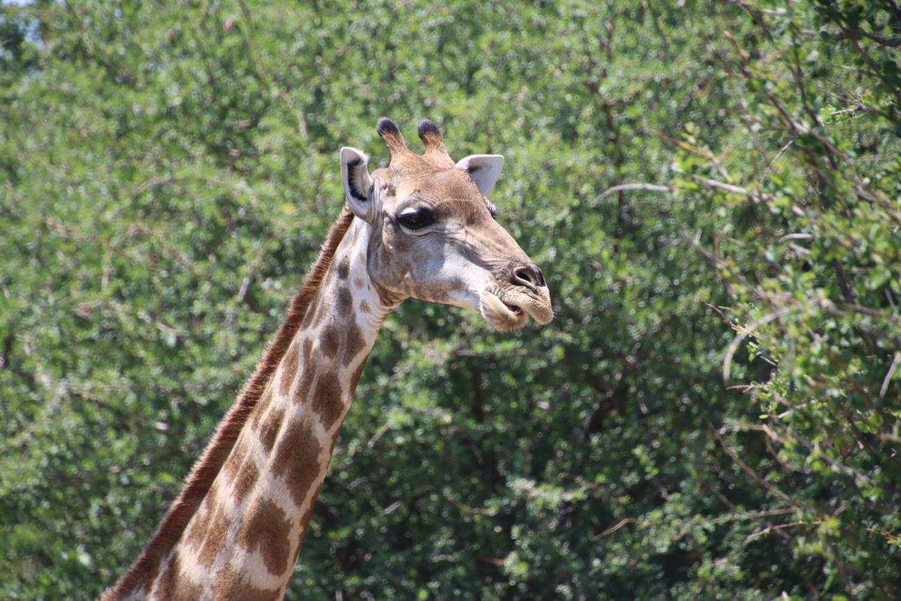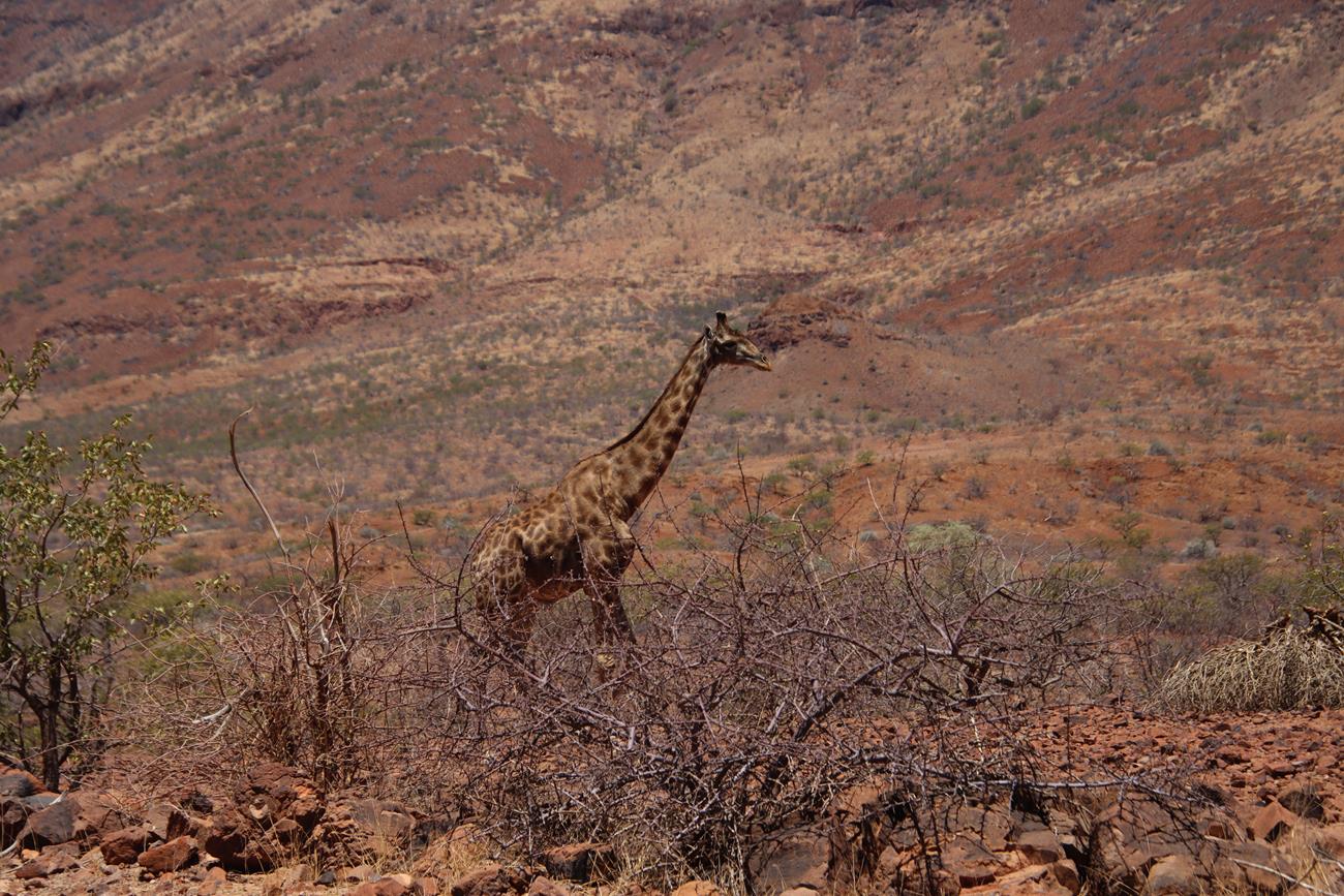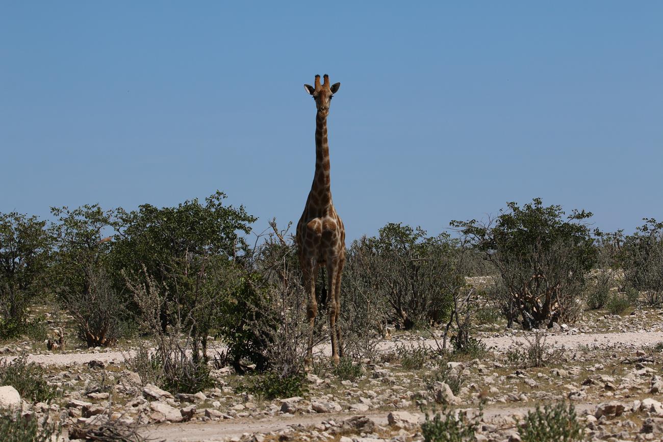 Et en plus d’avoir des paysages splendides, une piste extra, dame giraffe vient nous saluer.