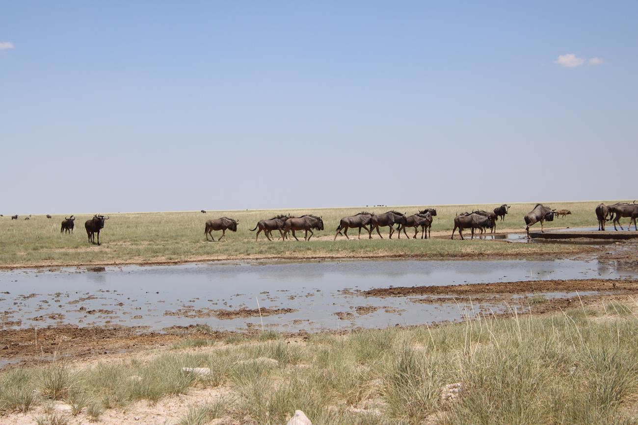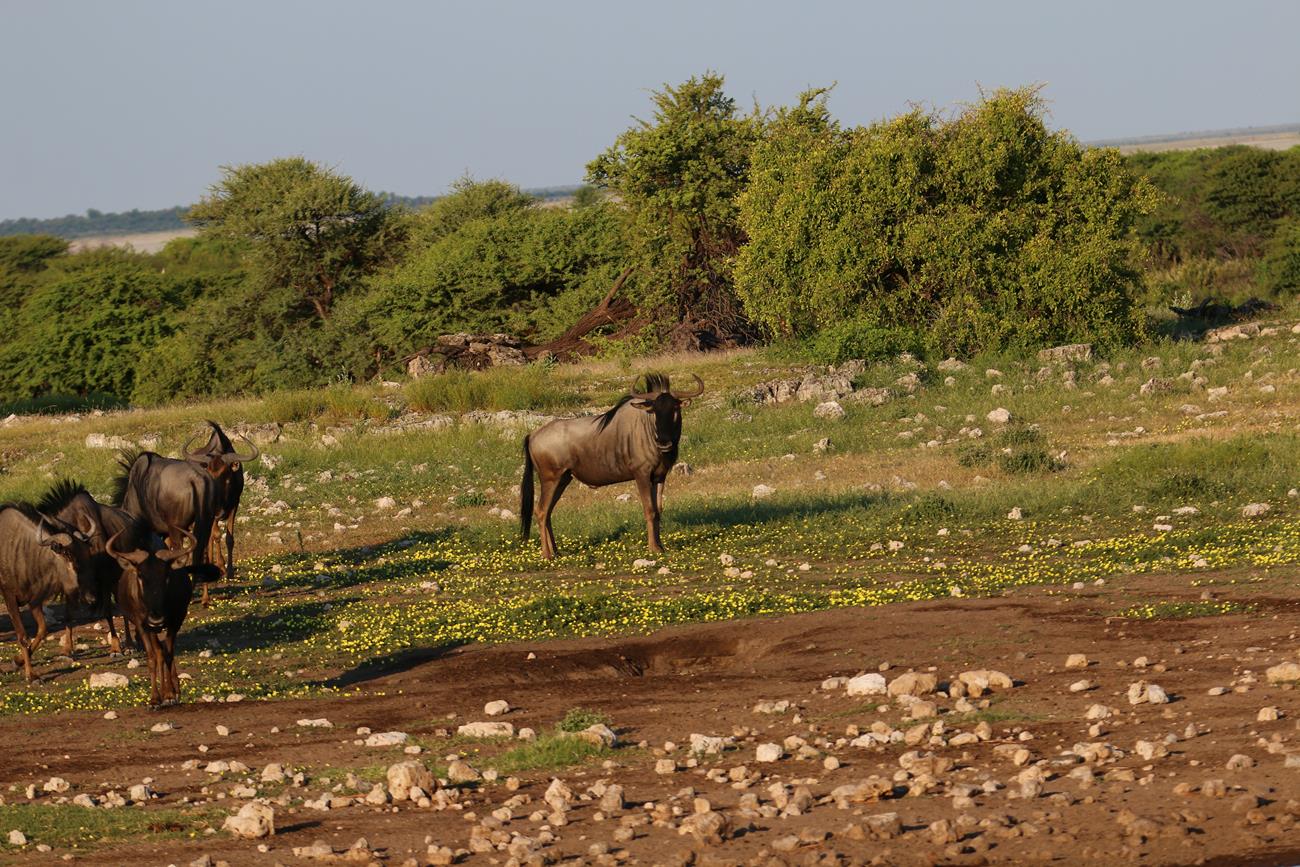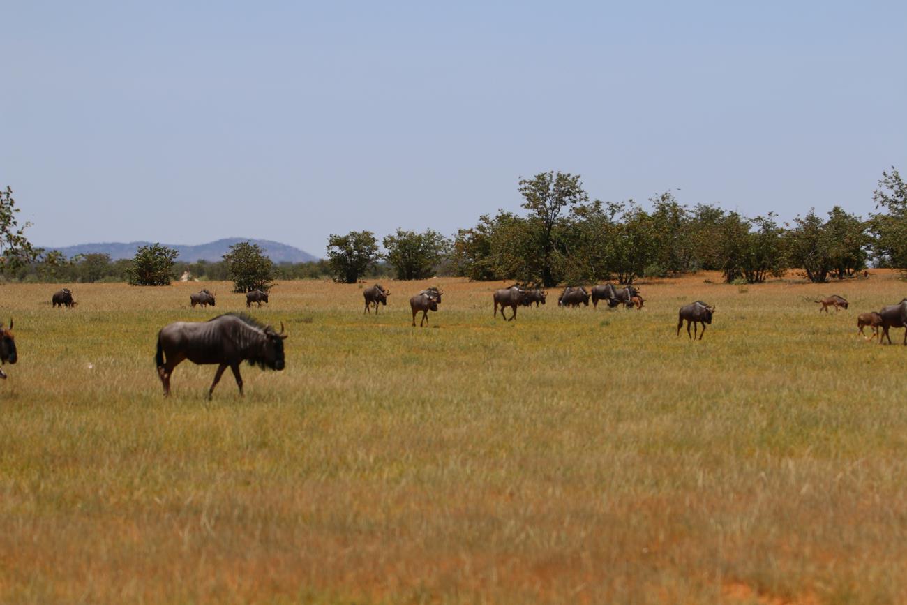 Nous reprenons la route et après plusieurs kilomètres, sans voir beaucoup de choses, enfin les gnous arrivent.