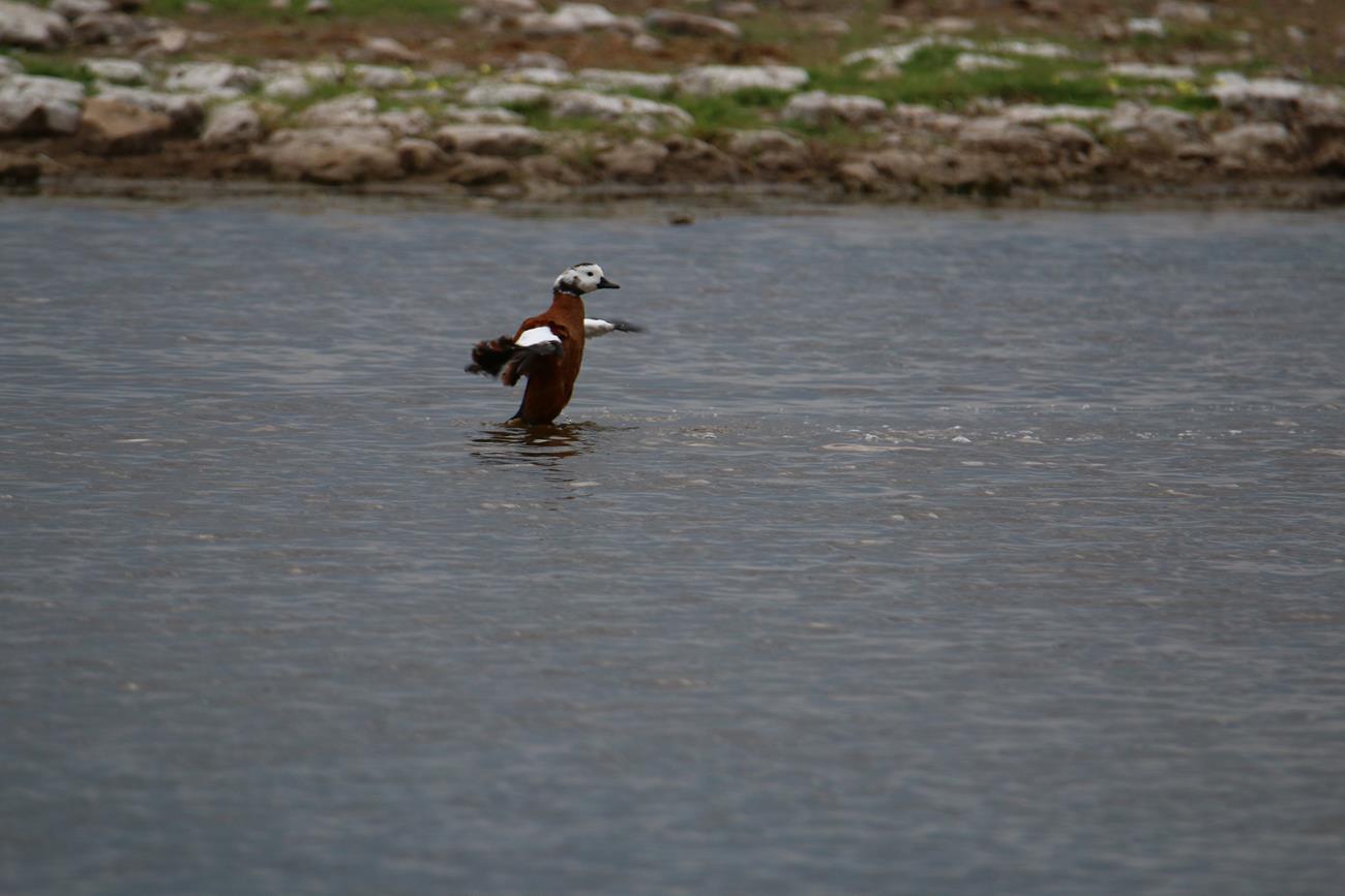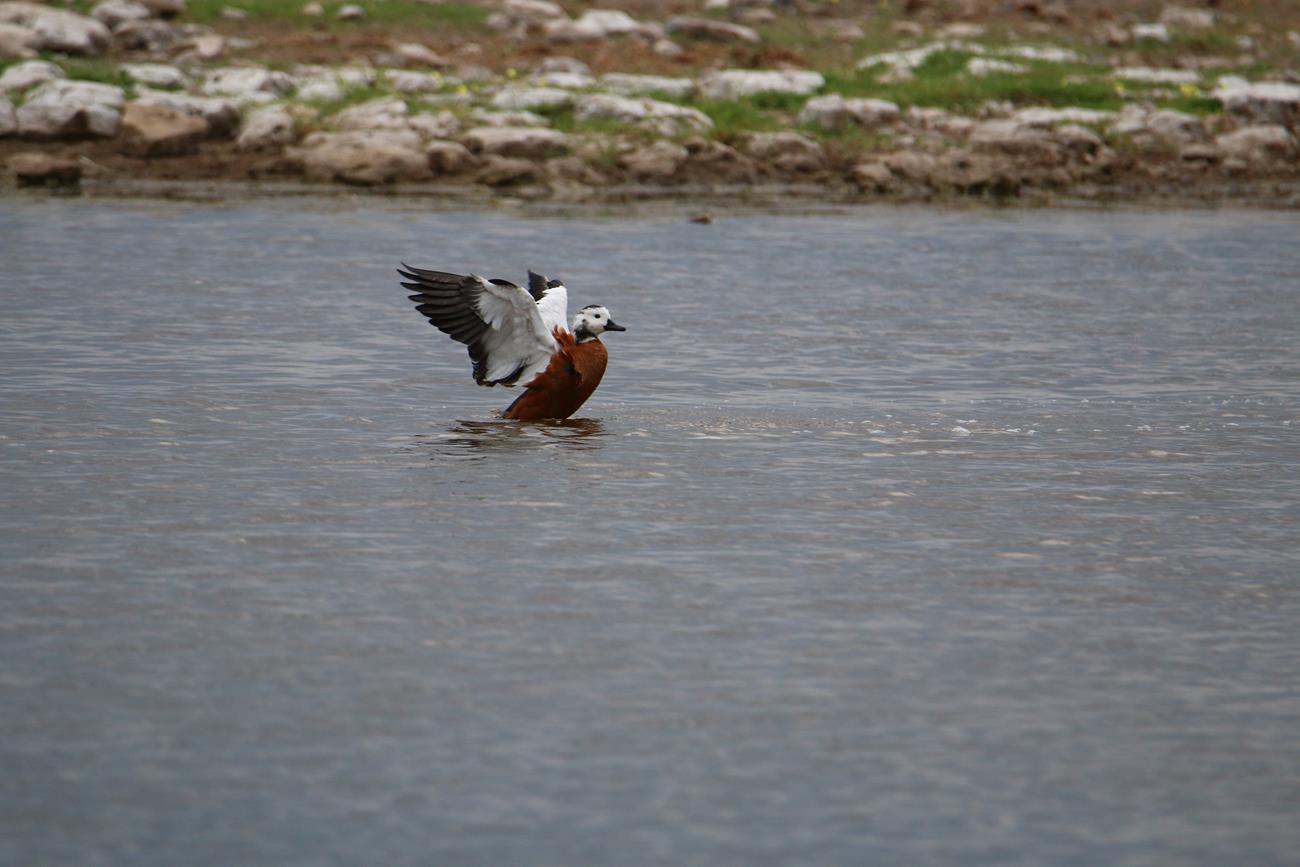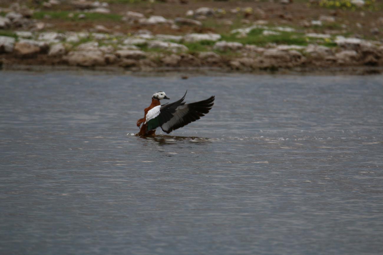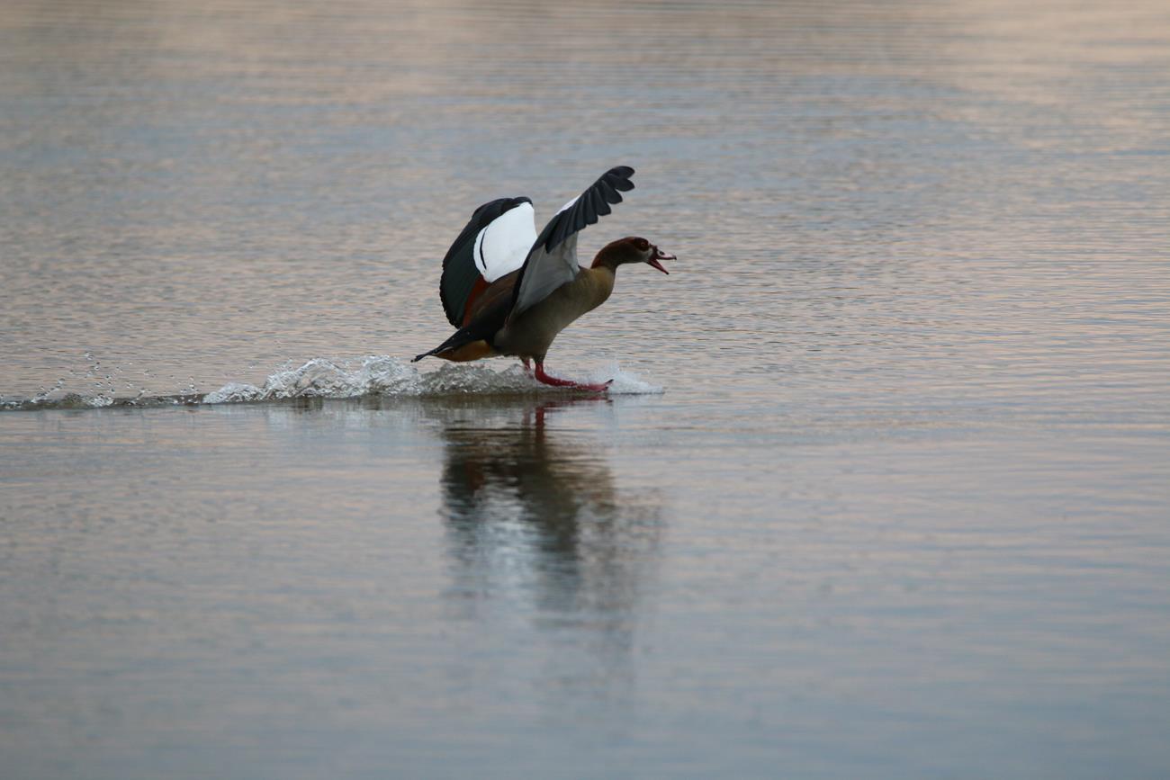 Nous relongeons le Pan . Flamands rose et le flamant nain, canards de toutes sortes avec les gnous et les zèbres en arrière plan .