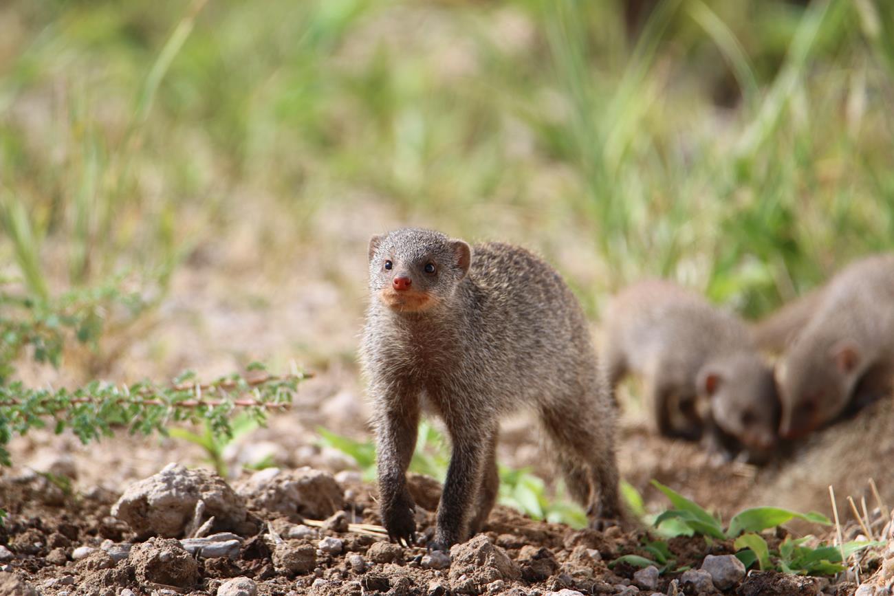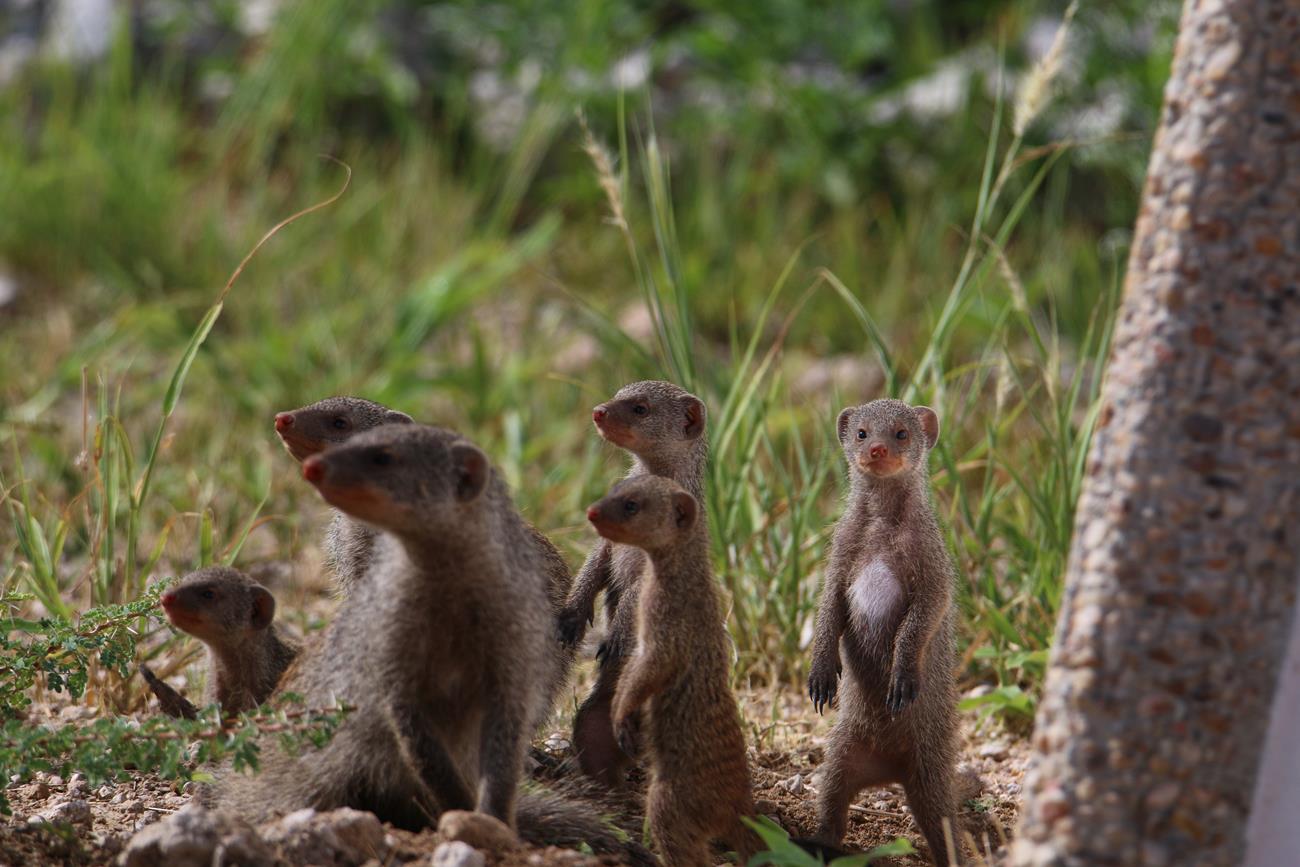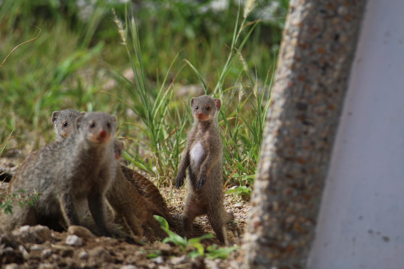 A 300 m de la sortie du camp, une petite famille de mangoustes. Mauvais choix de mise au point sur l’appareil dommage.