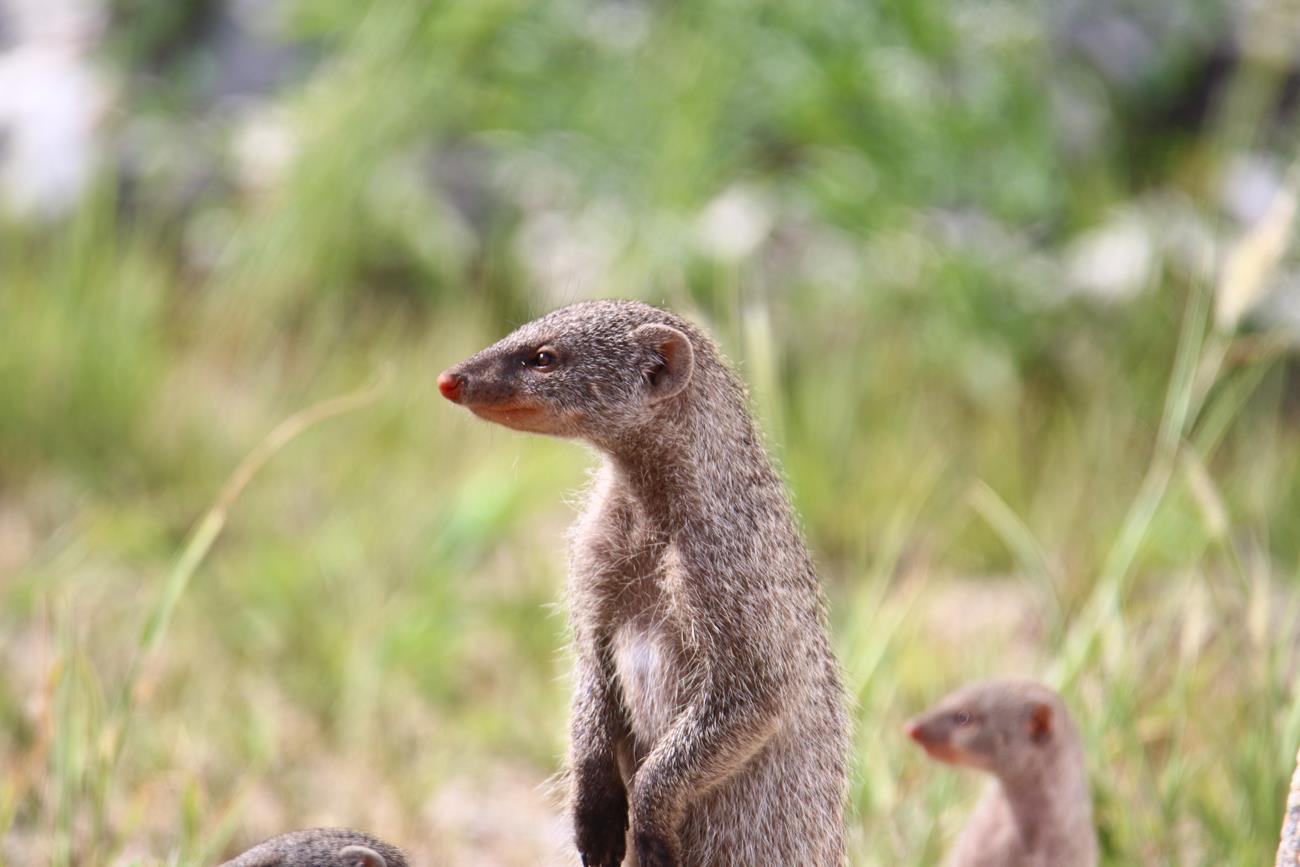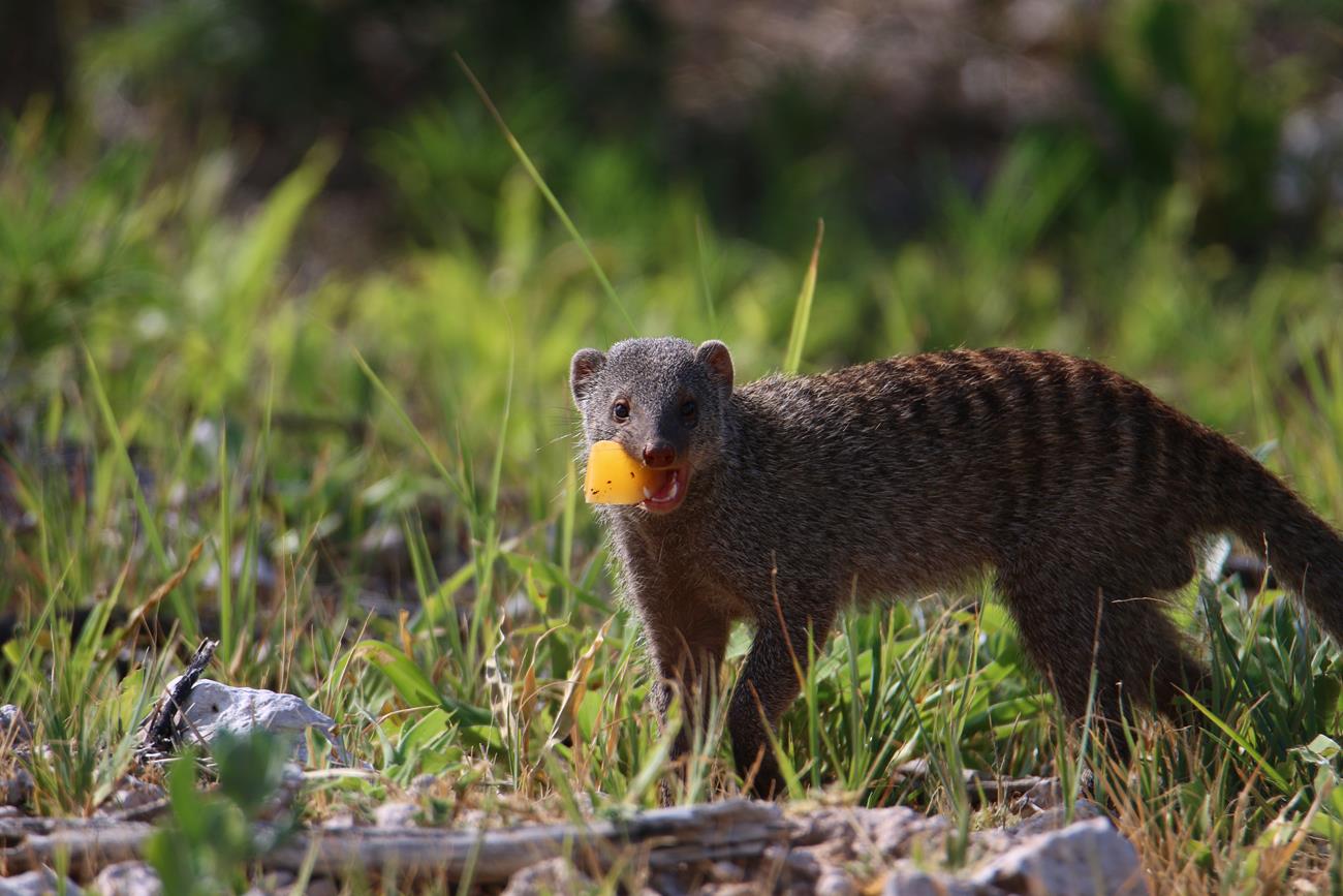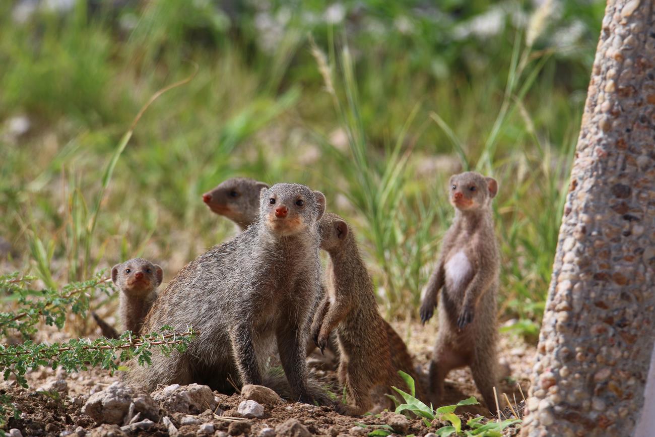A 300 m de la sortie du camp, une petite famille de mangoustes. Mauvais choix de mise au point sur l’appareil dommage.