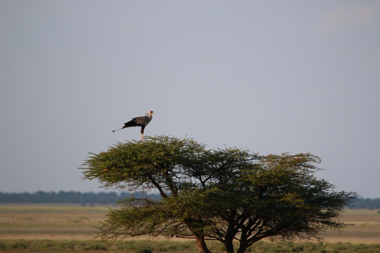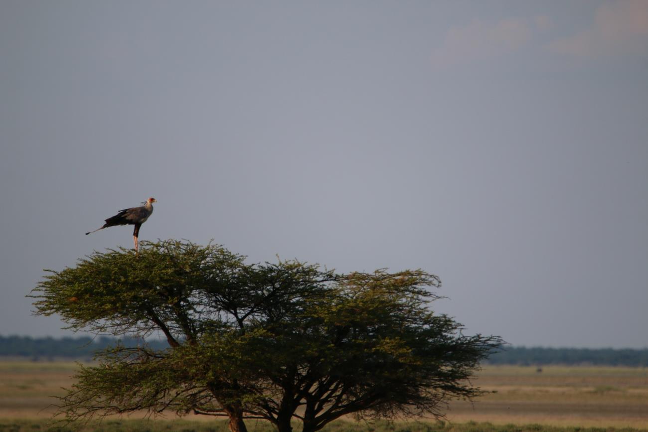 Et au loin, un secrétaire ( ou serpentaire) sur un arbre !