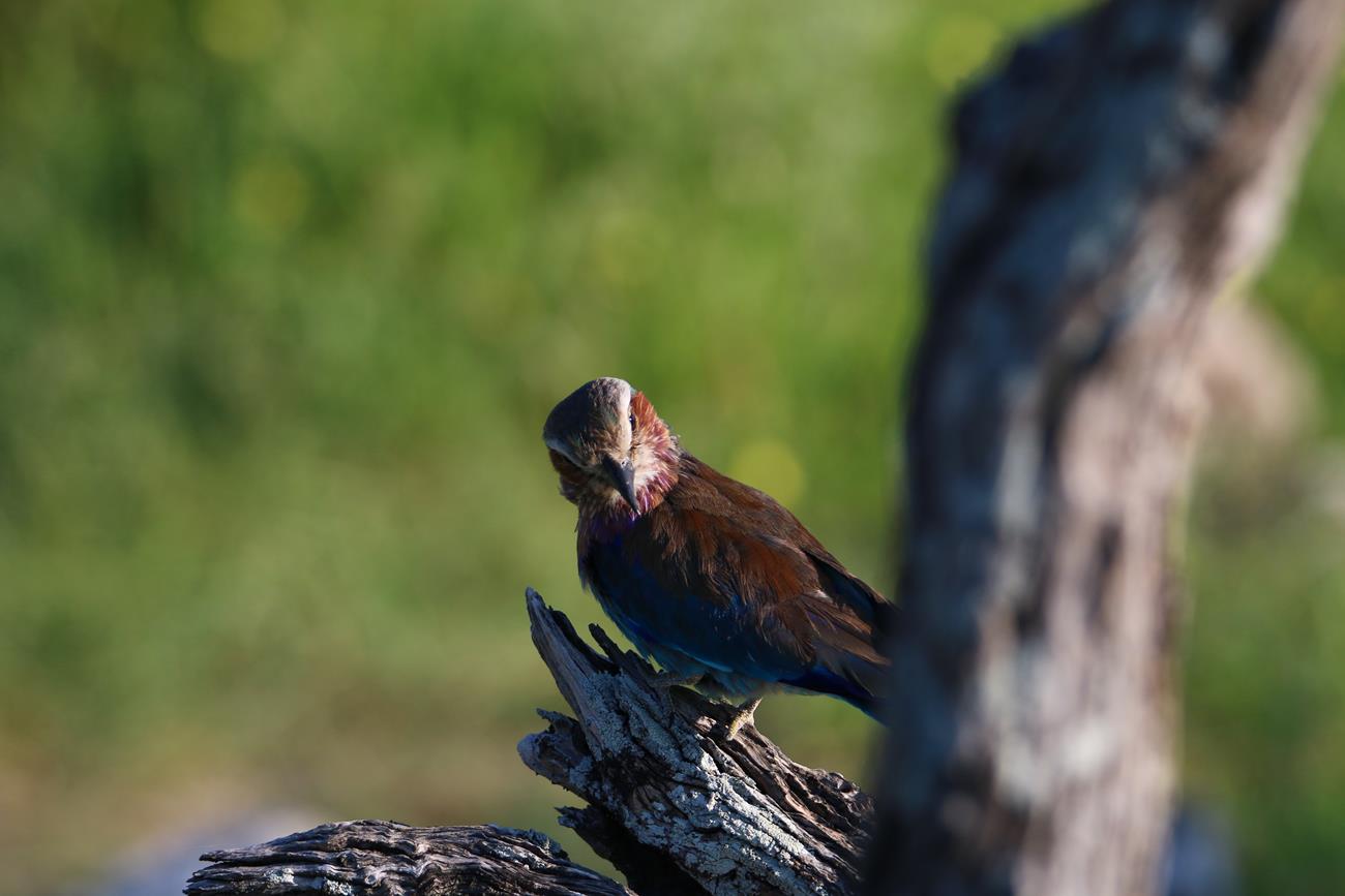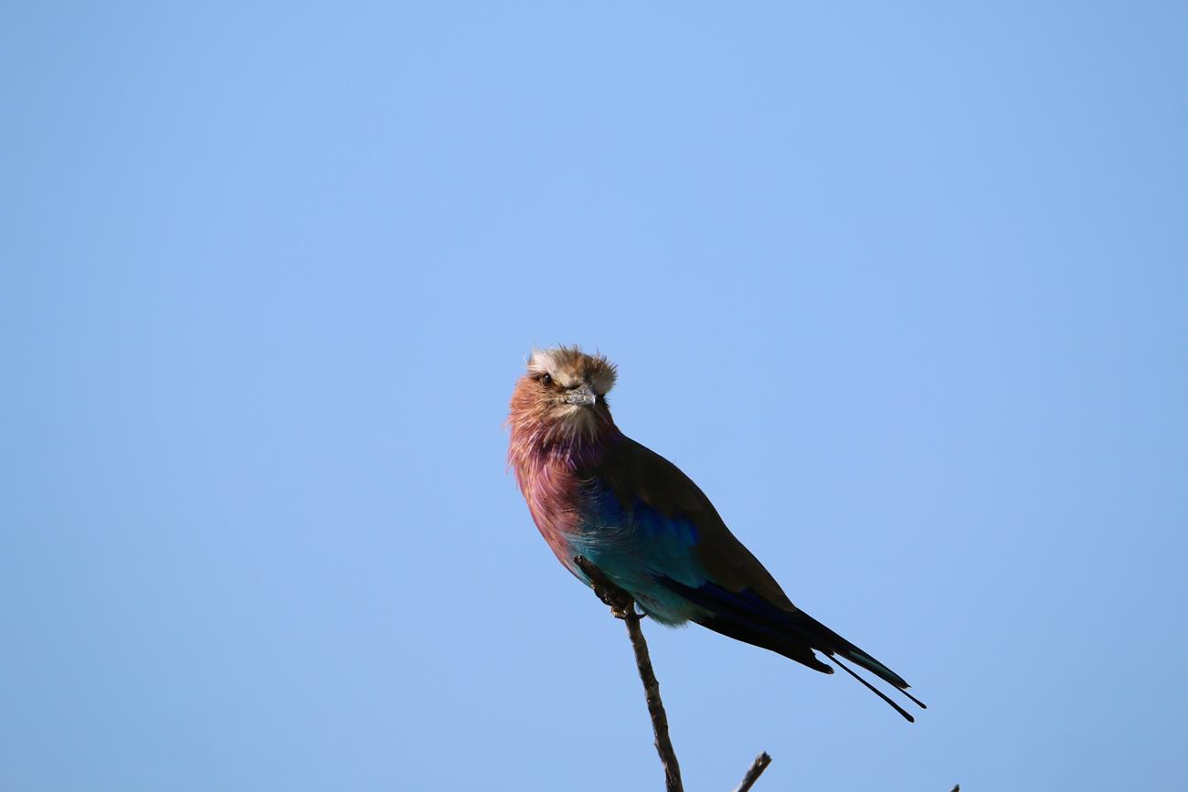 Ahhh le rollier à longs brins. Un petit oiseau de 120 g a un vol rapide et efficace surtout en période de reproduction pour impressionner sa belle ! Mais si vous passez sur son territoire, vous n’oublierez pas son chant ou plus plutôt ses cris stridents très désagréables pour nos oreilles.