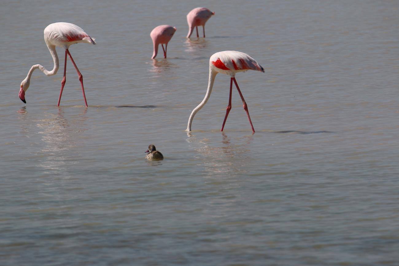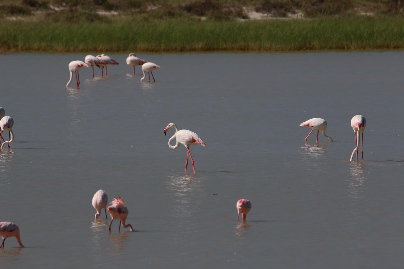 Et alors avec des flamants rose , non, nous n’en croyons pas nos yeux. Et des marabous au premier plan .