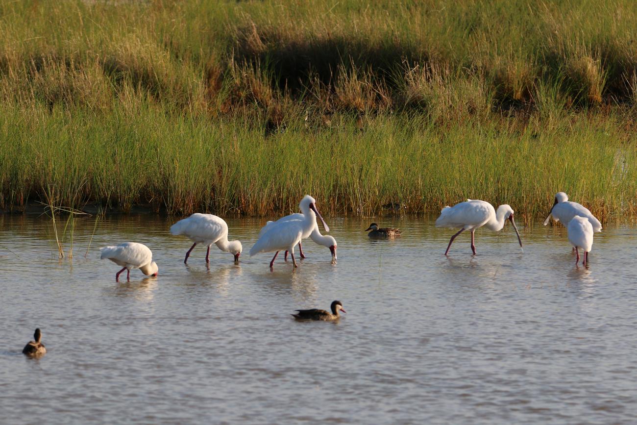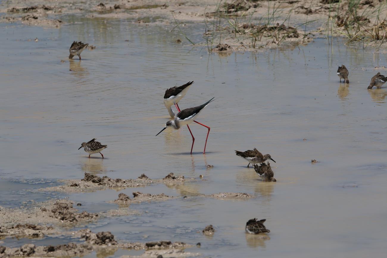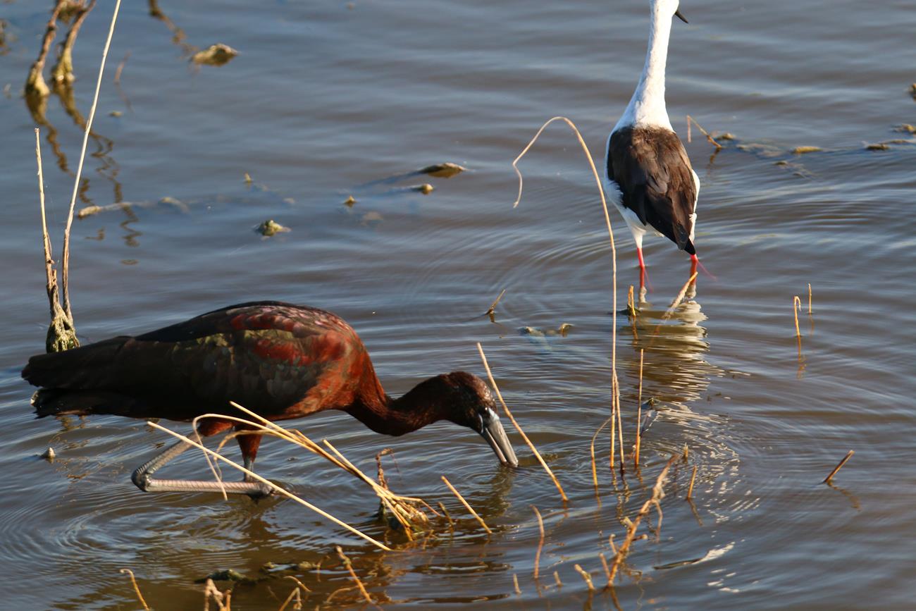 De l’autre côté de la piste c’est encore une vaste étendue d’eau . Et ça patauge et ça barbotte . Quel plaisir de votre ces oiseaux dans ce milieu.