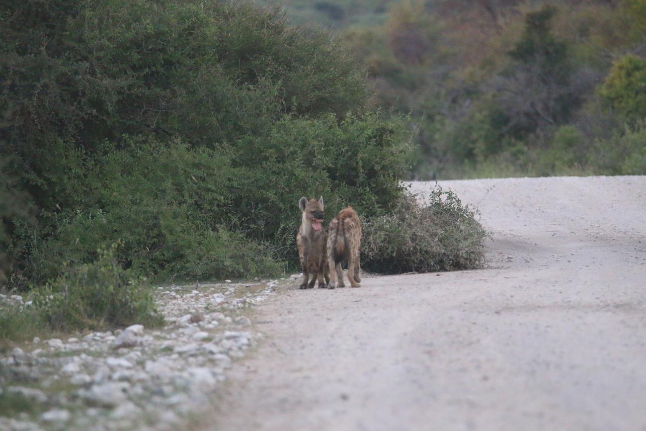 Par contre les hyènes, je les ai photographiées, les photos sont nulles, mais je les mets quand même, histoire d’imaginer le léopard à notre porte !
