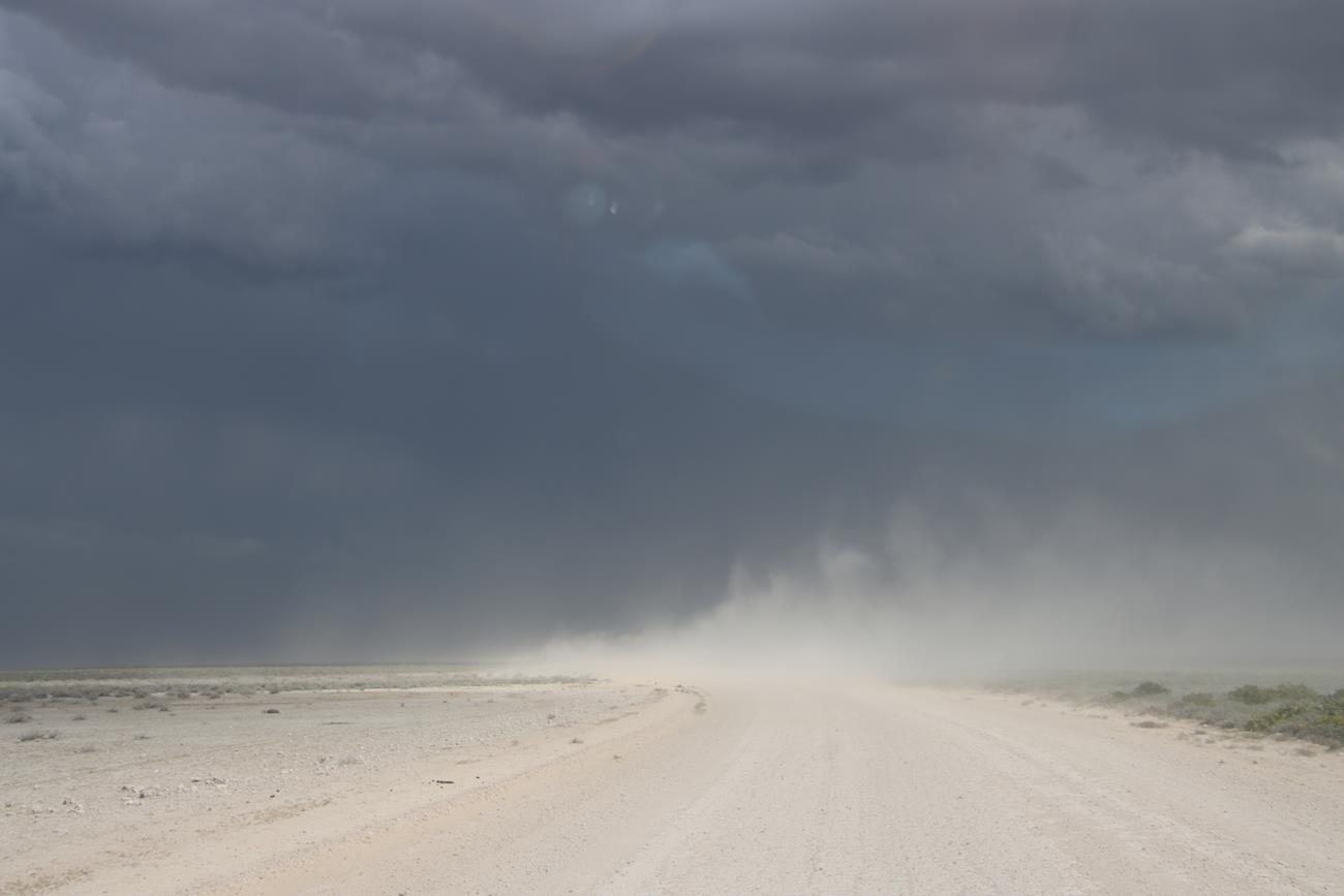 Le ciel s’assombrit et une espèce de tempête de sable nous tombe dessus.