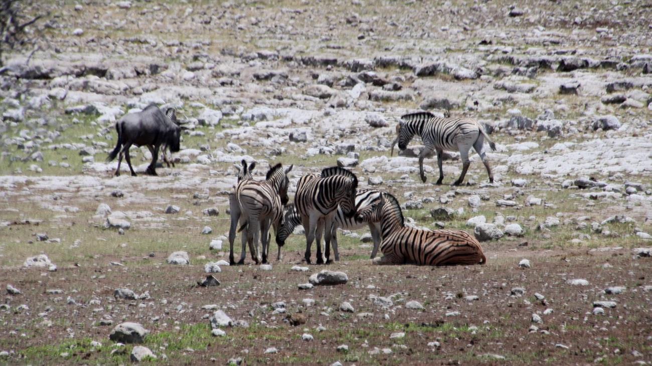 Et soudain des zèbres viennent à ses côtés et tentent de le faire bouger. Ils sont restés près de lui au moins 45 minutes. Impressionnant.