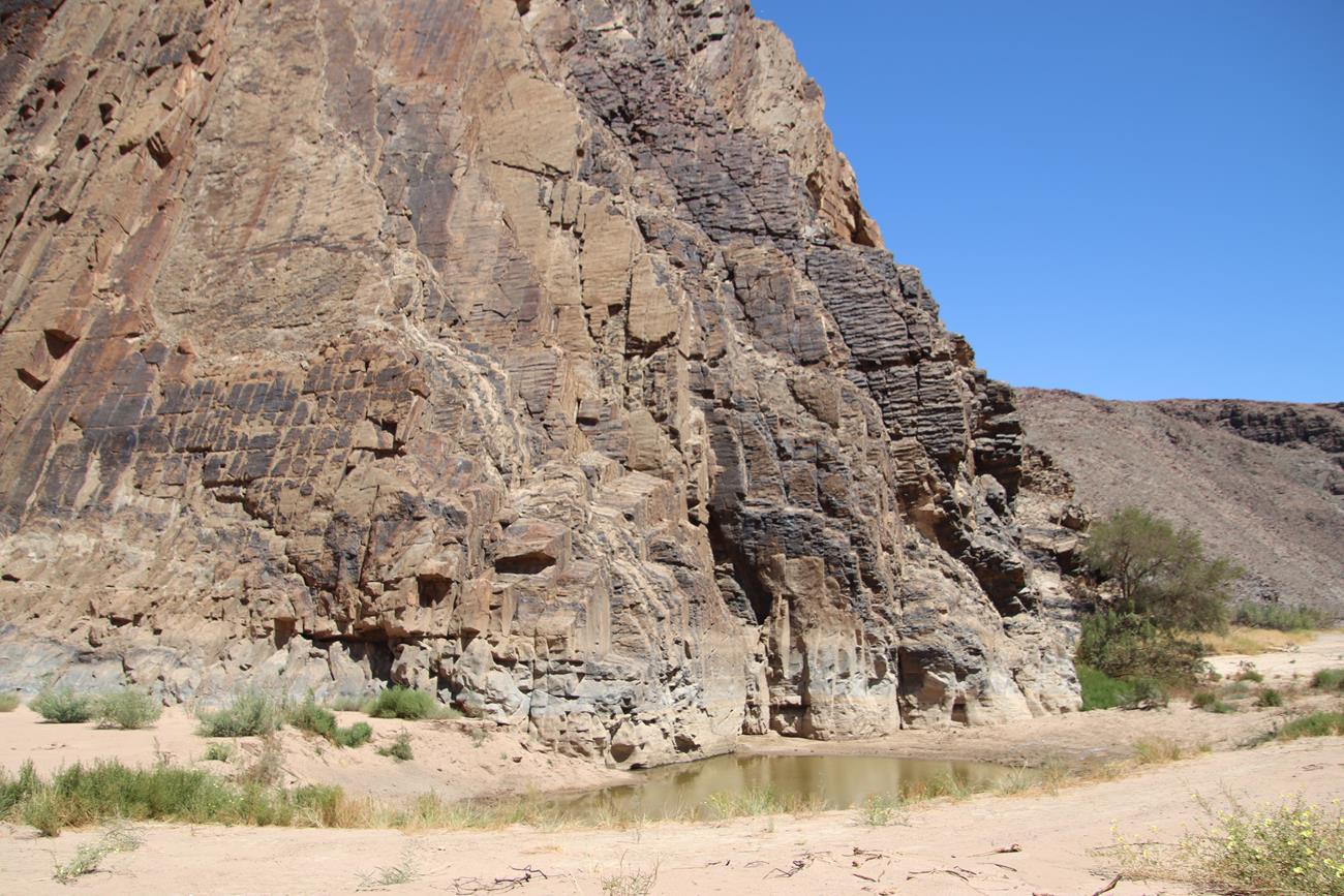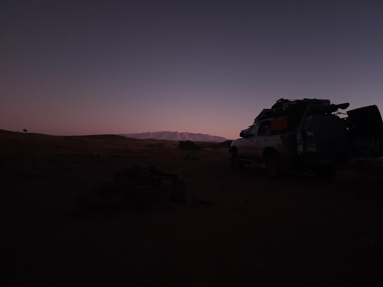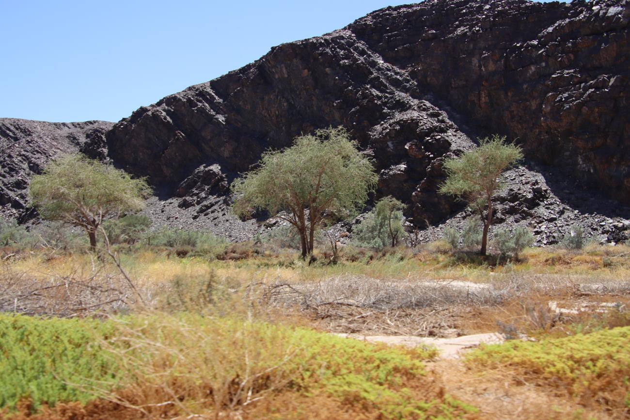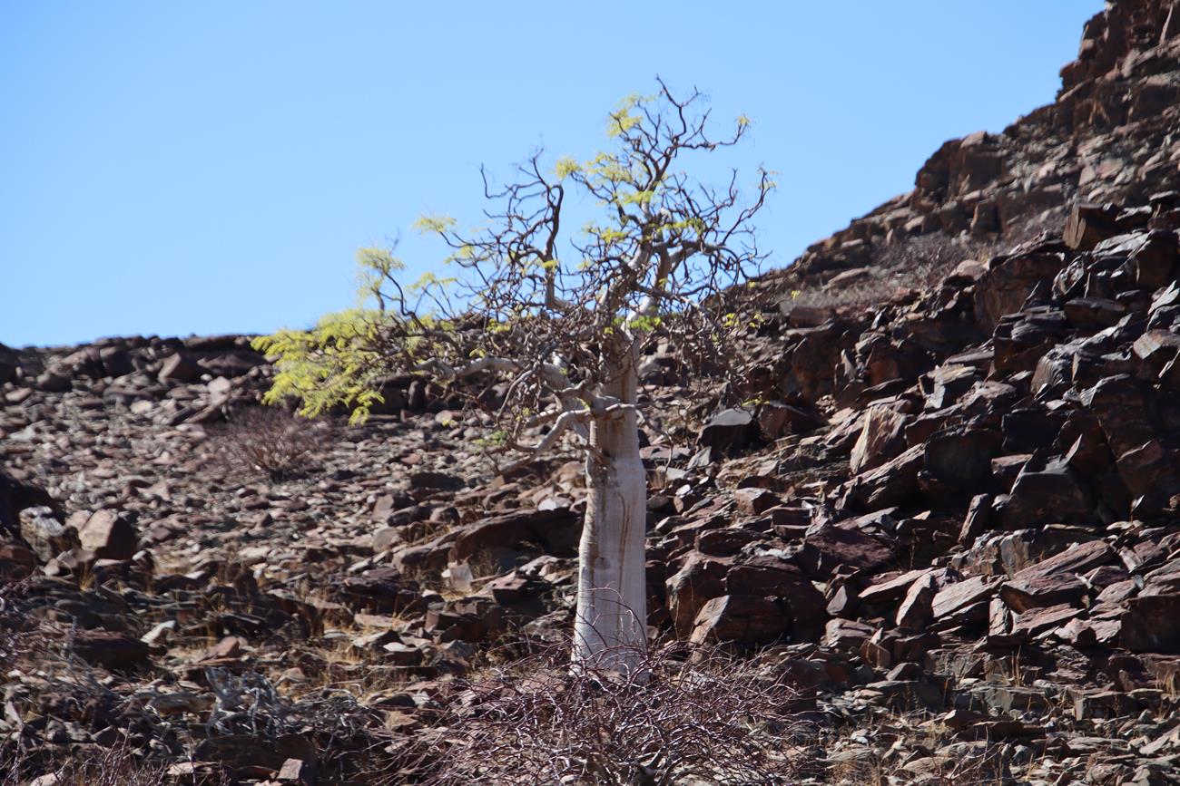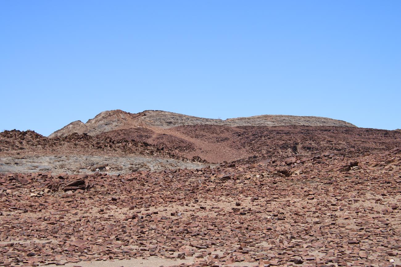 Nous continuons un peu dans le lit de la riviere Ugab, mais il y a encore pas mal d’eau et pour le coup, les pneus ne vont pas du tout dans la gadoue, donc nous décidons de remonter .
