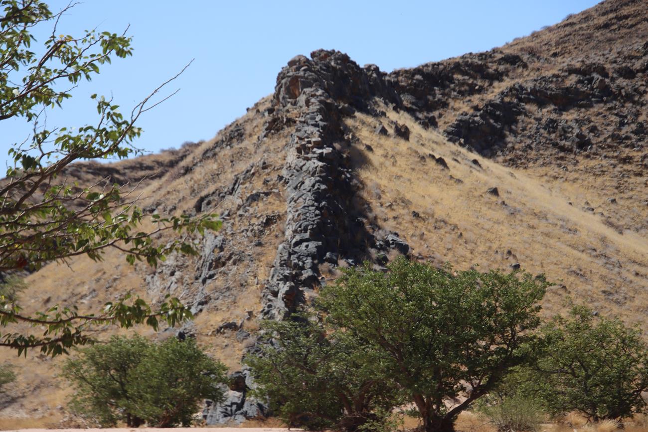 Tiens, une digue de dolérites (roche magmatique)