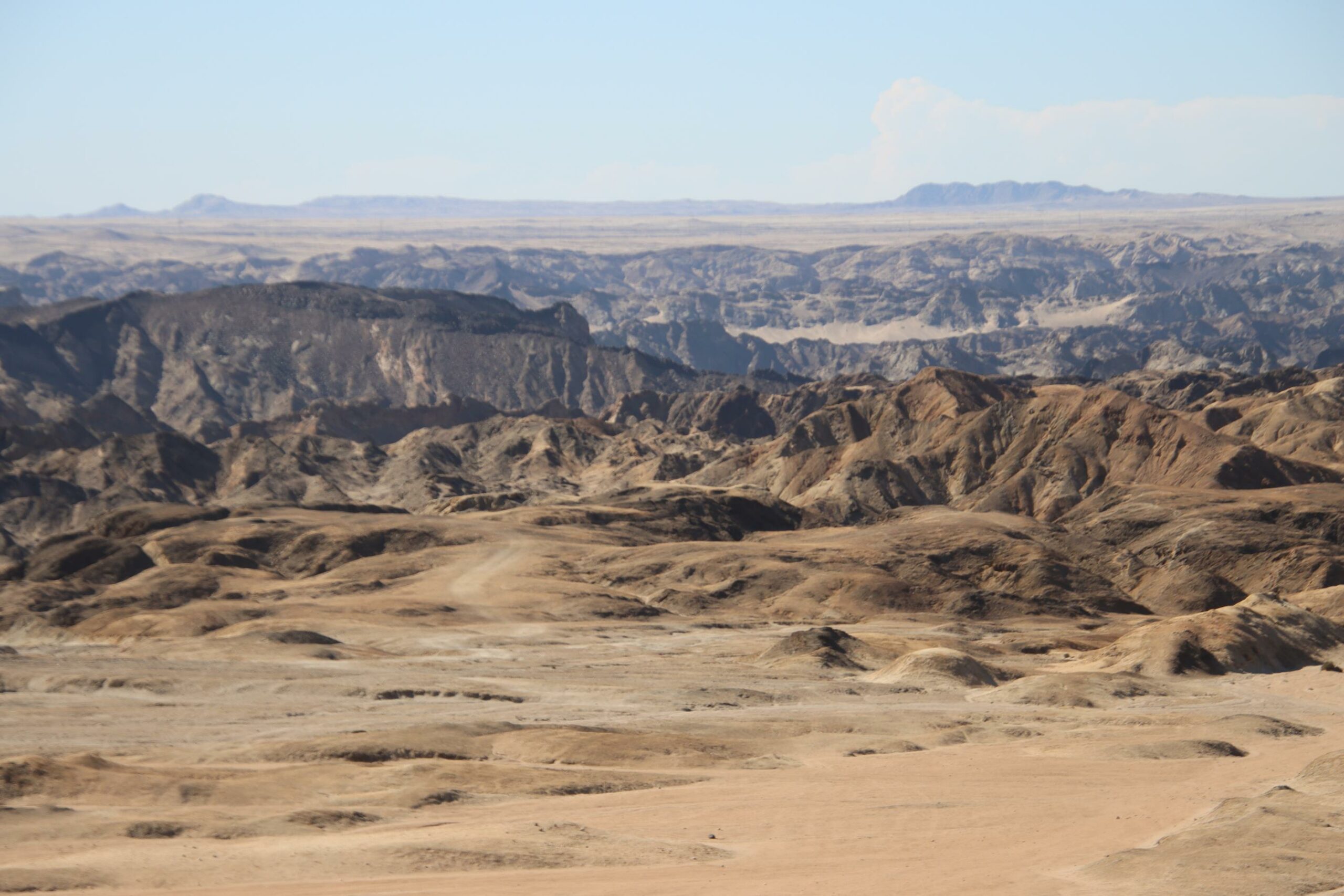 Nous continuons notre route vers le plateau du Gamsberg. Piste ligne droite sur des dizaines de kilomètres .