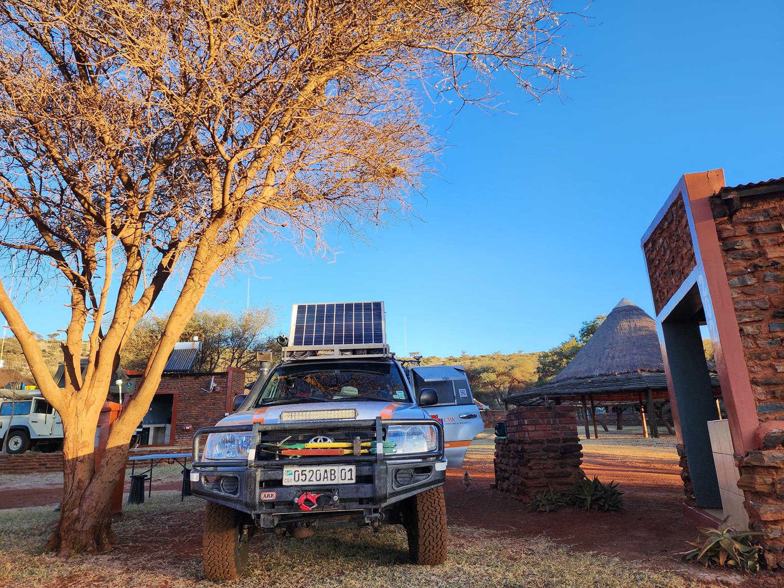 Ce matin debout 7 h 00 et il fait doux, incroyable c’est changement de température. Nous quittons Louis Trichardt et direction le Botswana. Quand je vous dis que notre programme change, il est carrément chamboulé mais c’est sympa aussi.