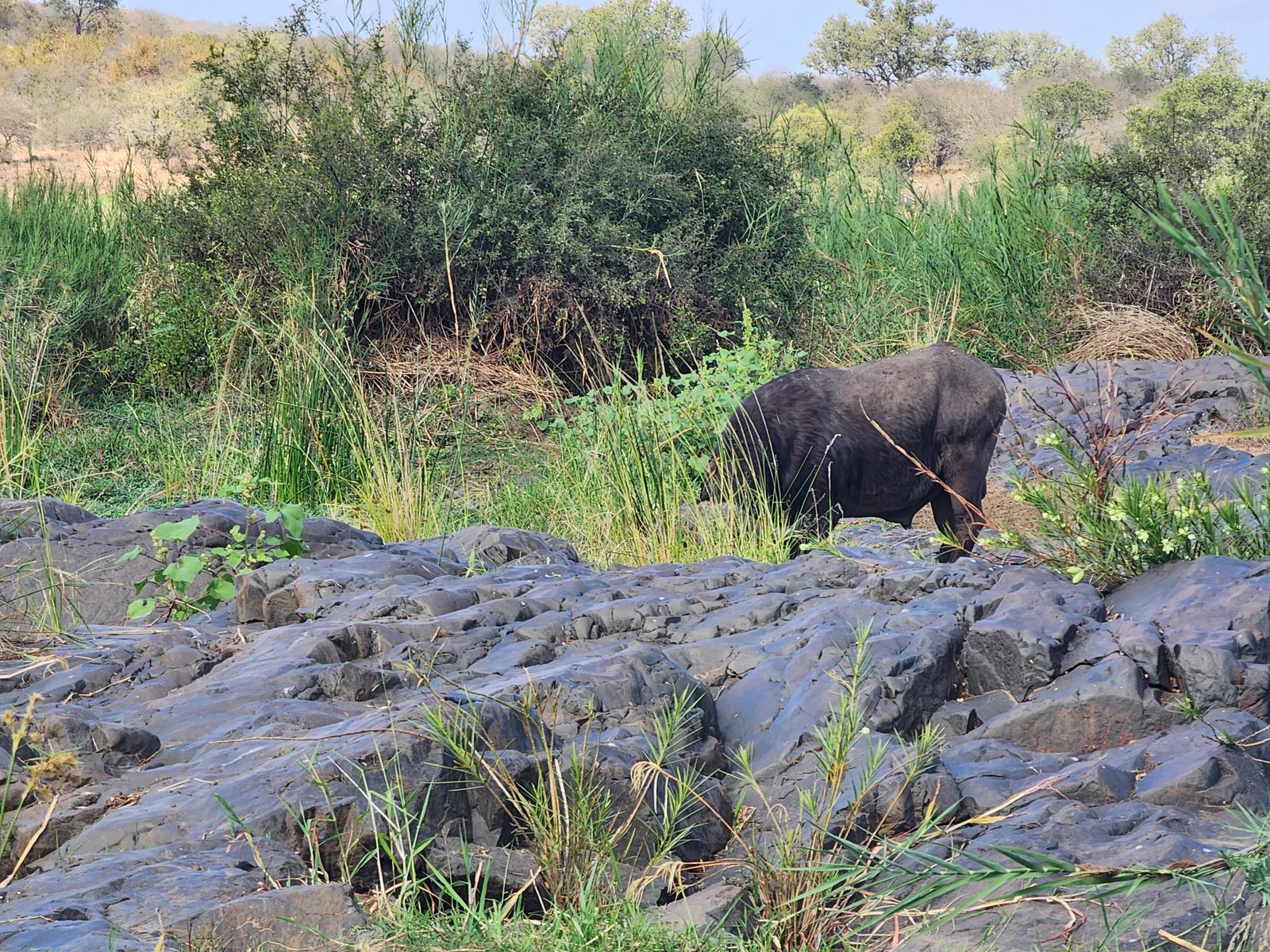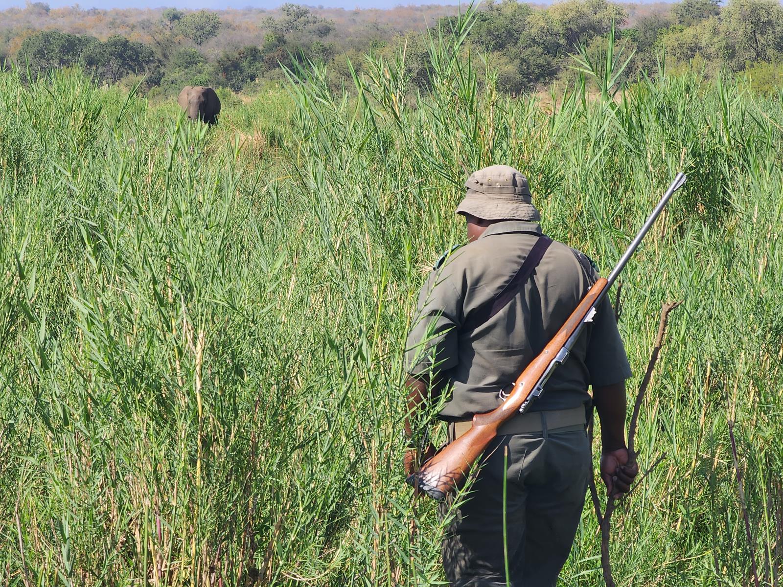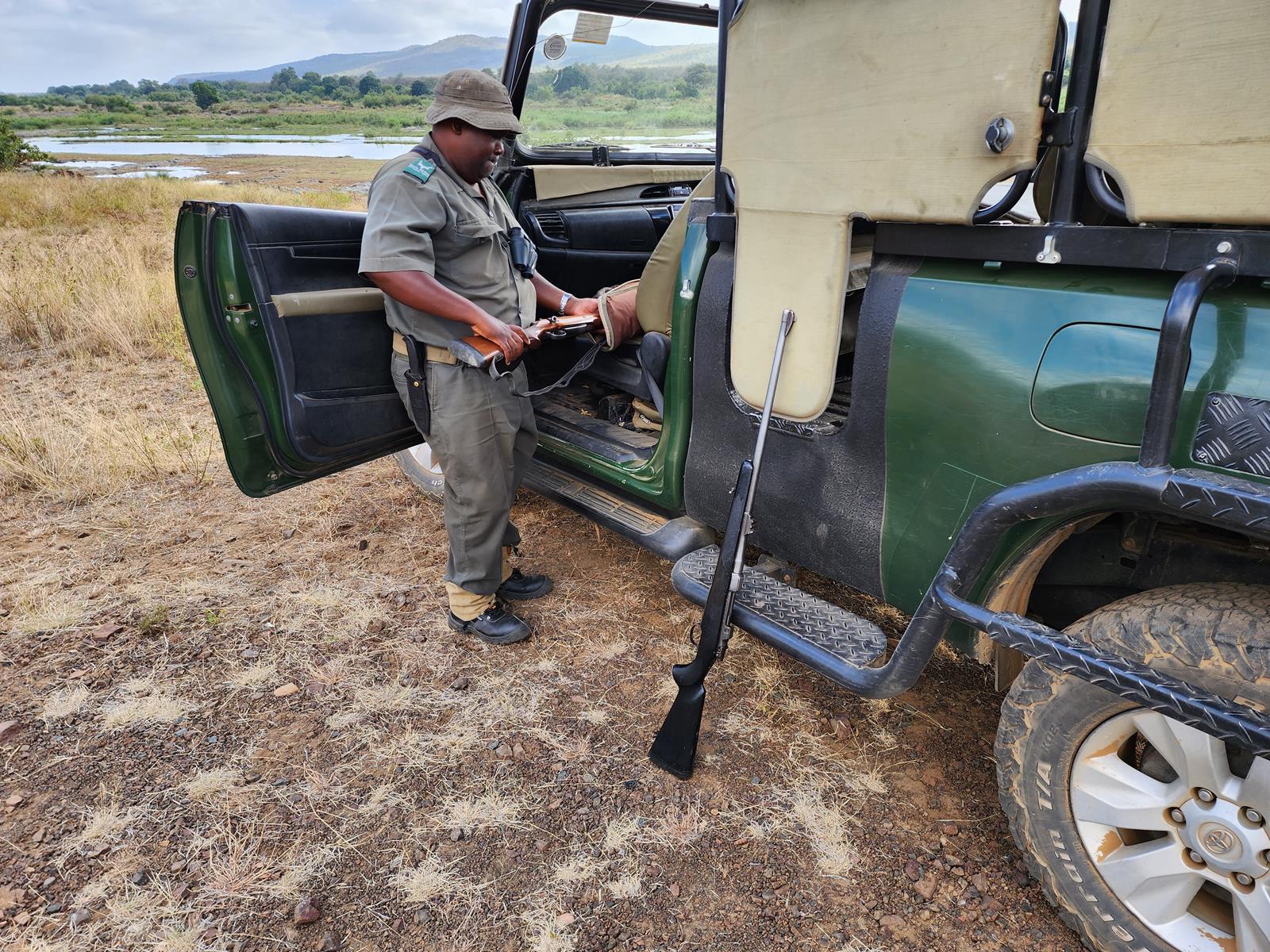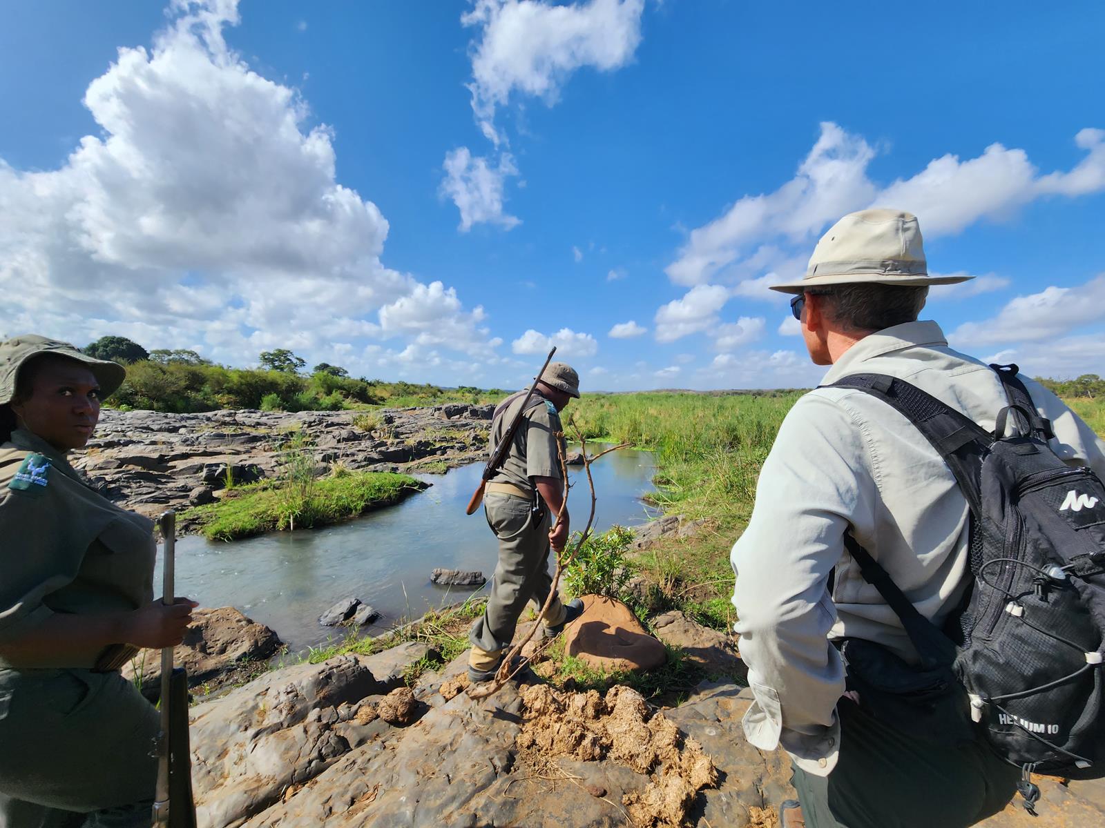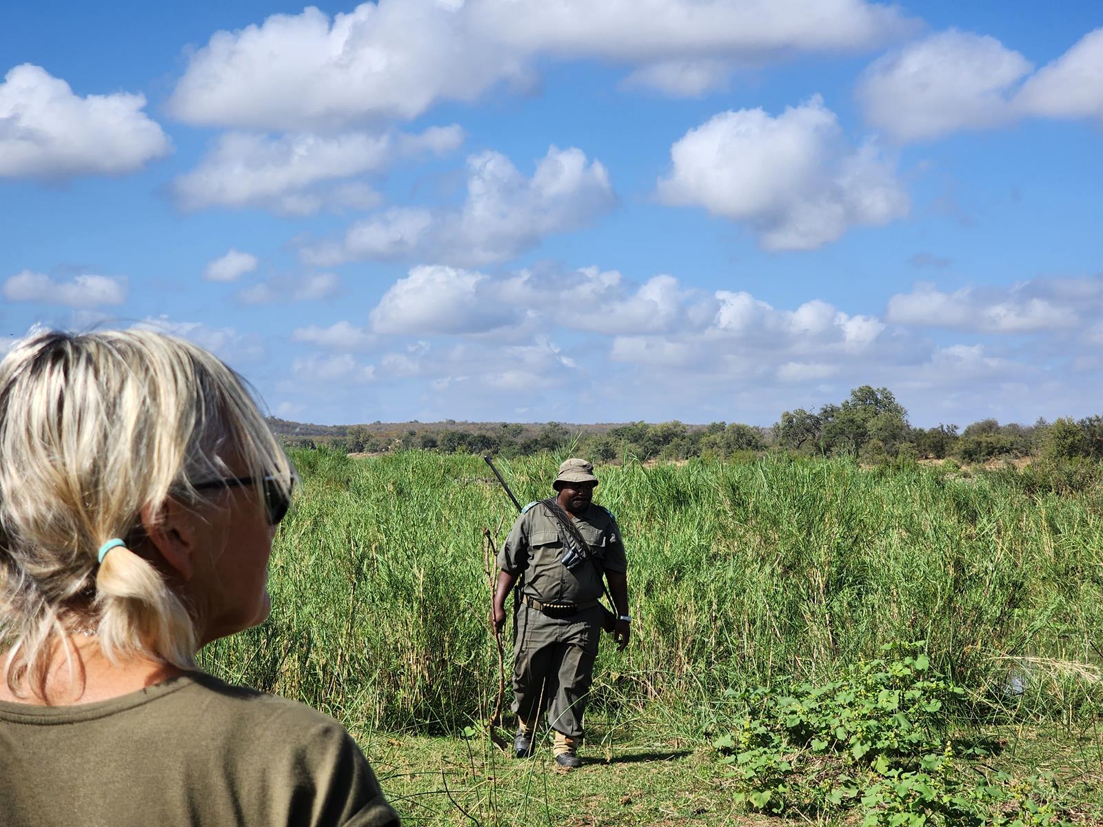 Nous partons faire un safari de 2 h à pieds avec deux rangers. Assez impressionnant de ne plus être à l’abri dans la voiture.