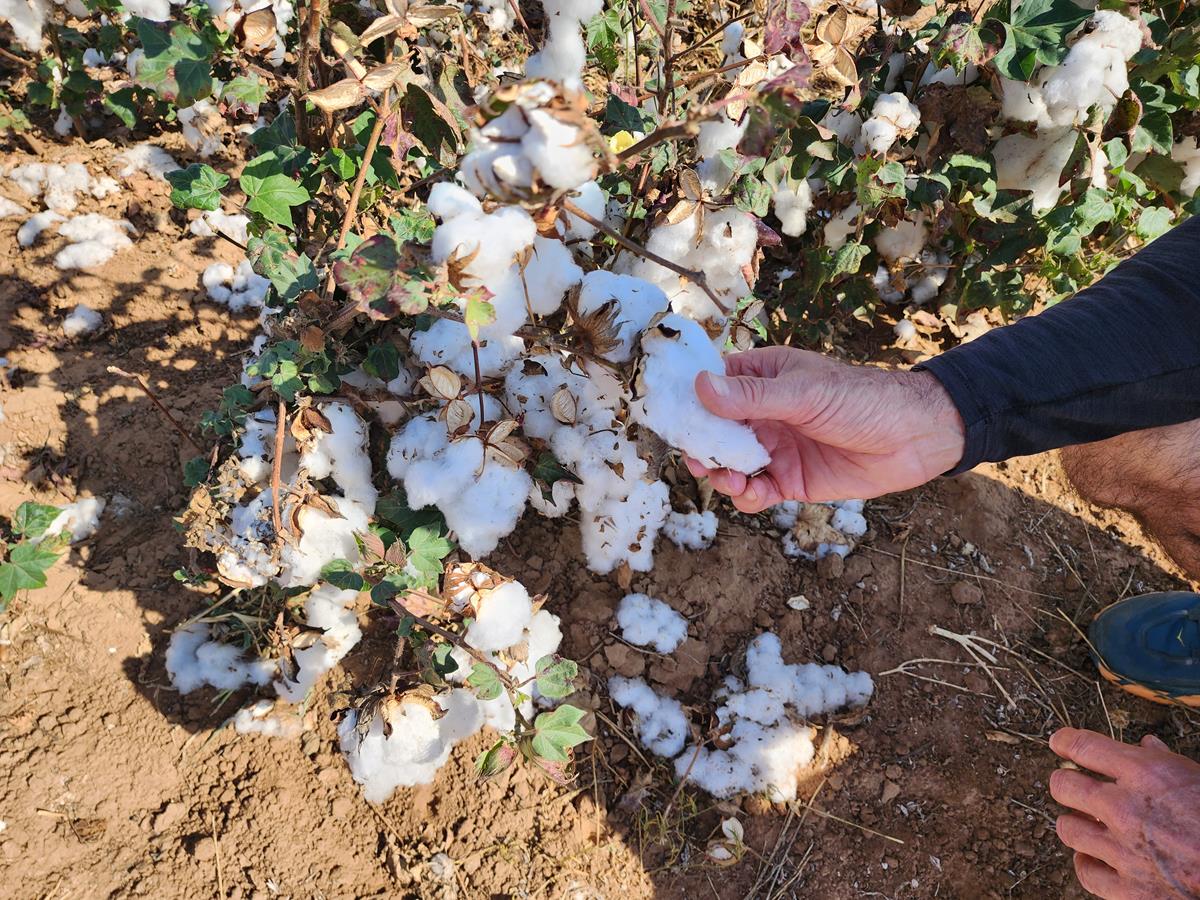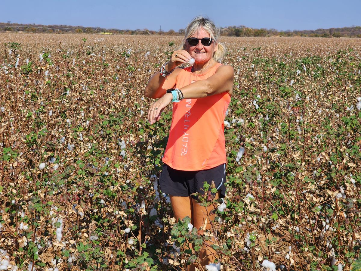 Il y a juste plus haut une autre piste et celle-ci est protégée par une clôture. C’est reparti. Nous stoppons devant ce champ de coton. Nous n’en avons jamais vu c’est l’occasion de regarder de près. C’est la fin de la saison, mais il en reste quand même un peu.