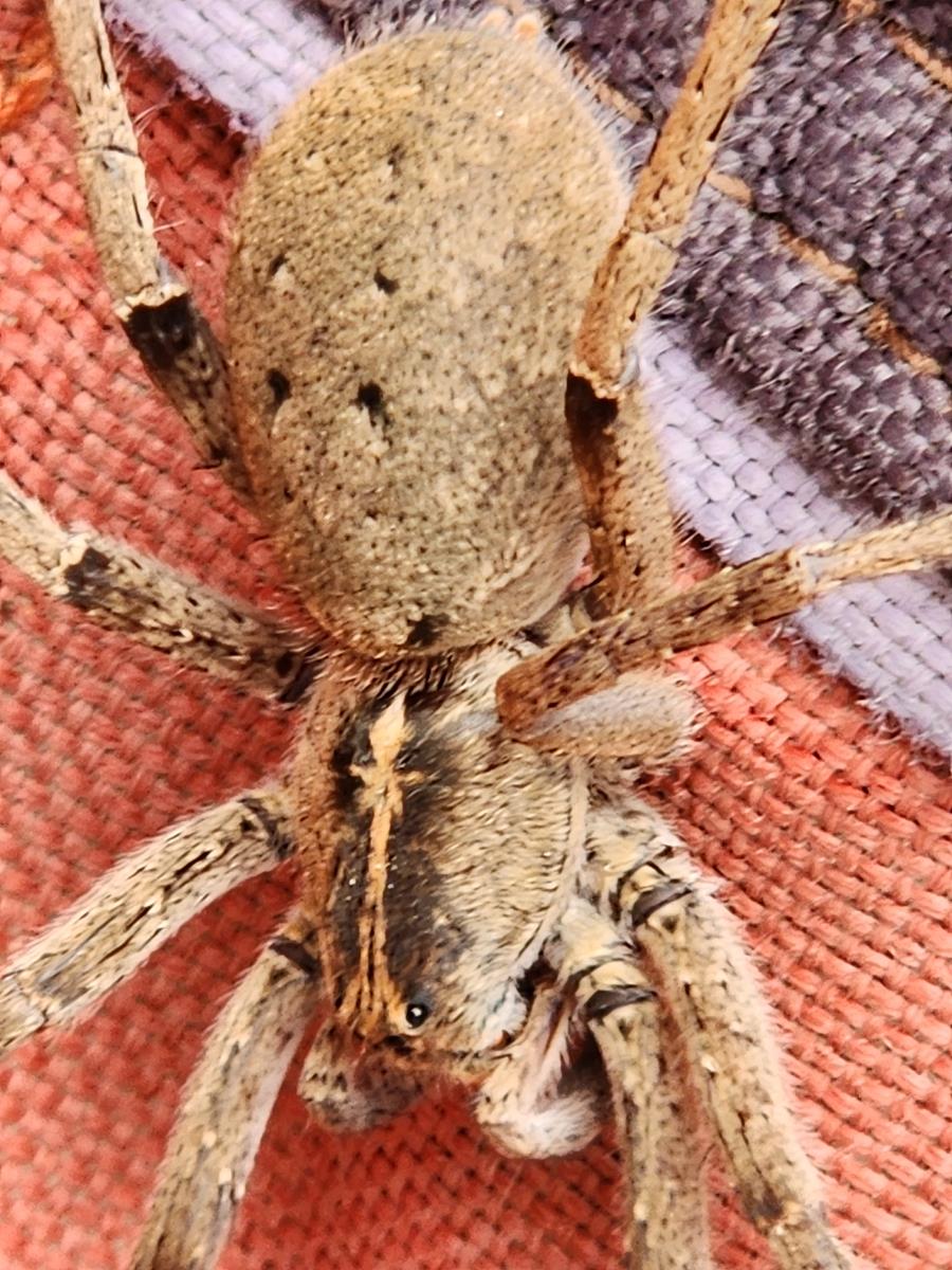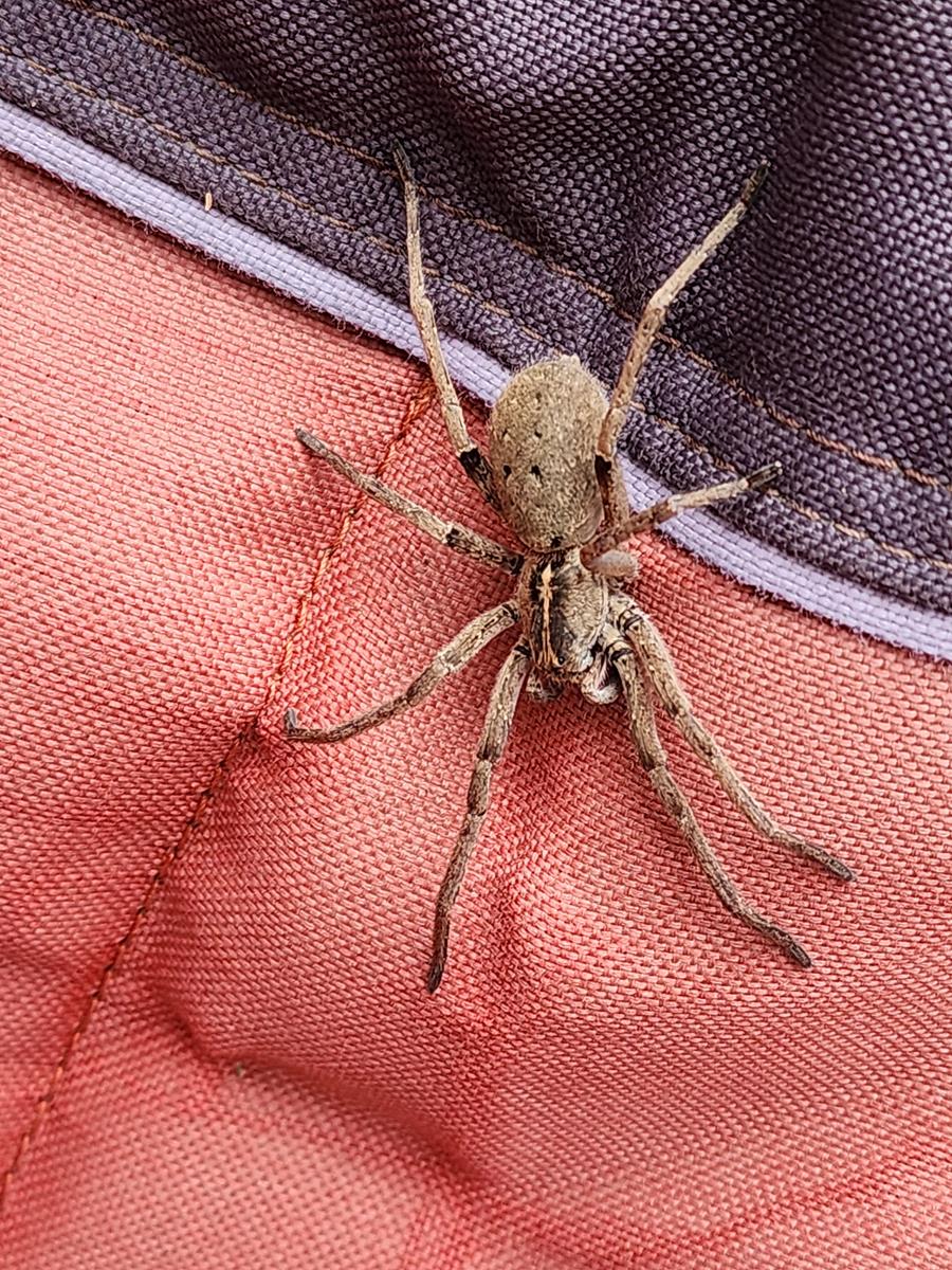 Ce matin nous avons de la visite ! Une araignée Ctenidae . Cette jolie petite bébête errante est tout simplement dangereuse pour l’homme et est notée venimeuse …rien que ça ! Sans la vigilance de Yann elle aurait été embarquée dans le véhicule !!!