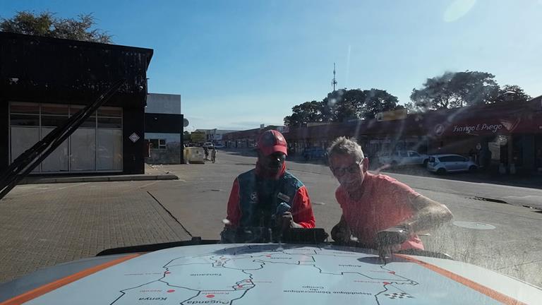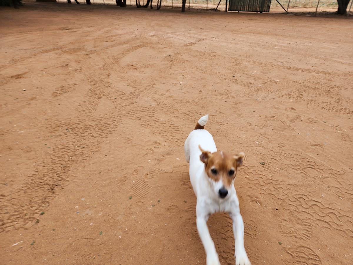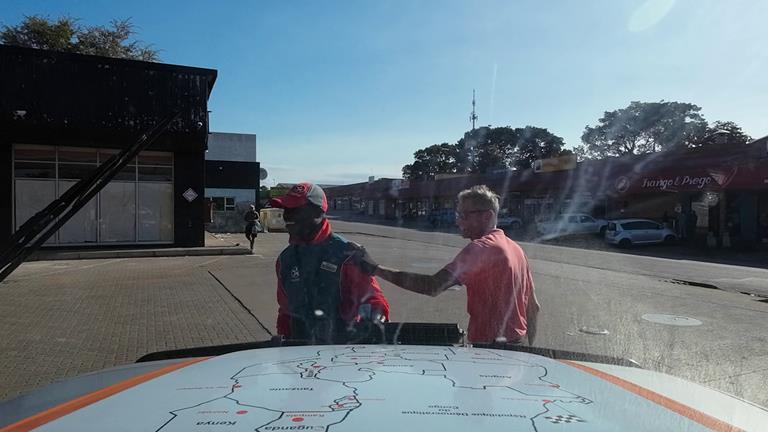 En route vers le Botswana….Notre ami tente de monter dans la voiture et son maître a de quoi faire pour l’y en empêcher.