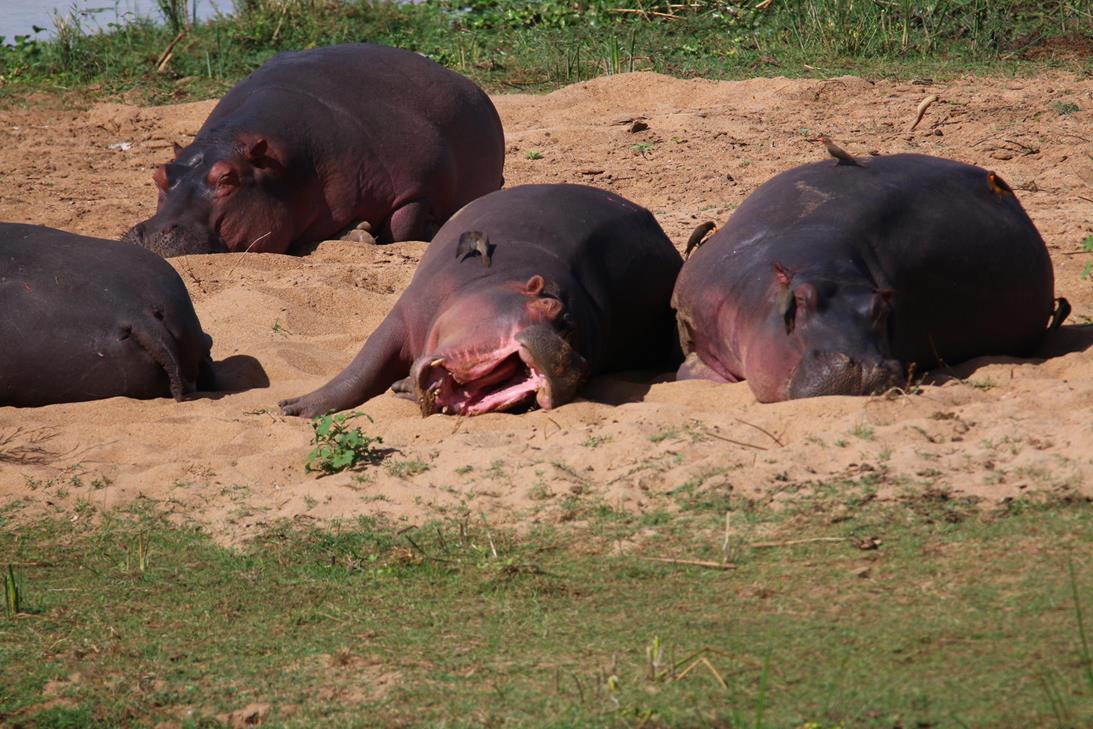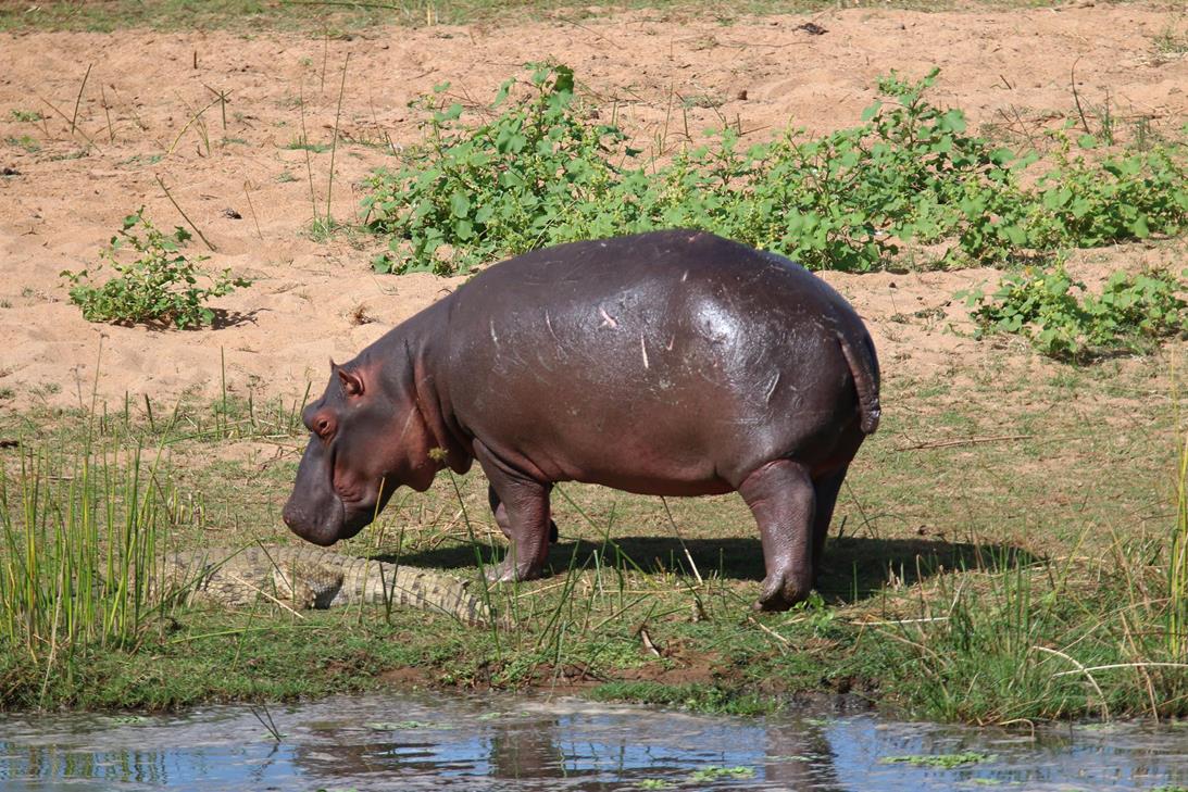 Clic clac photo et nous repartons mais 2 km plus loin il y a encore de drôles de traces sur la piste. Hippo !, bon là, c’est demi-tour, ça suffit pour aujourd’hui. Retour au camp dans notre petite oasis.