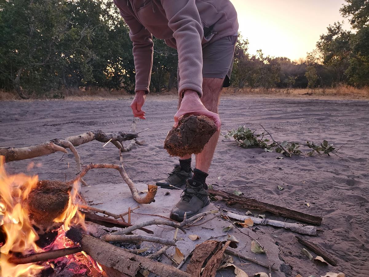 Une personne du staff nous apporte du bois, il ne fait pas froid c’est plutôt pour éloigner les animaux, éléphants, hippos, hyènes …