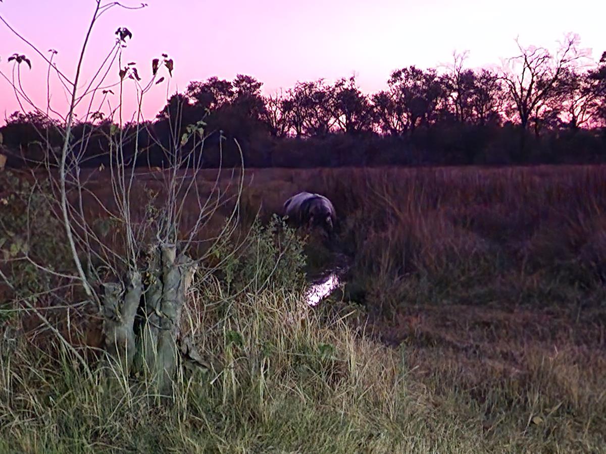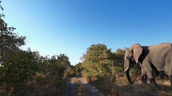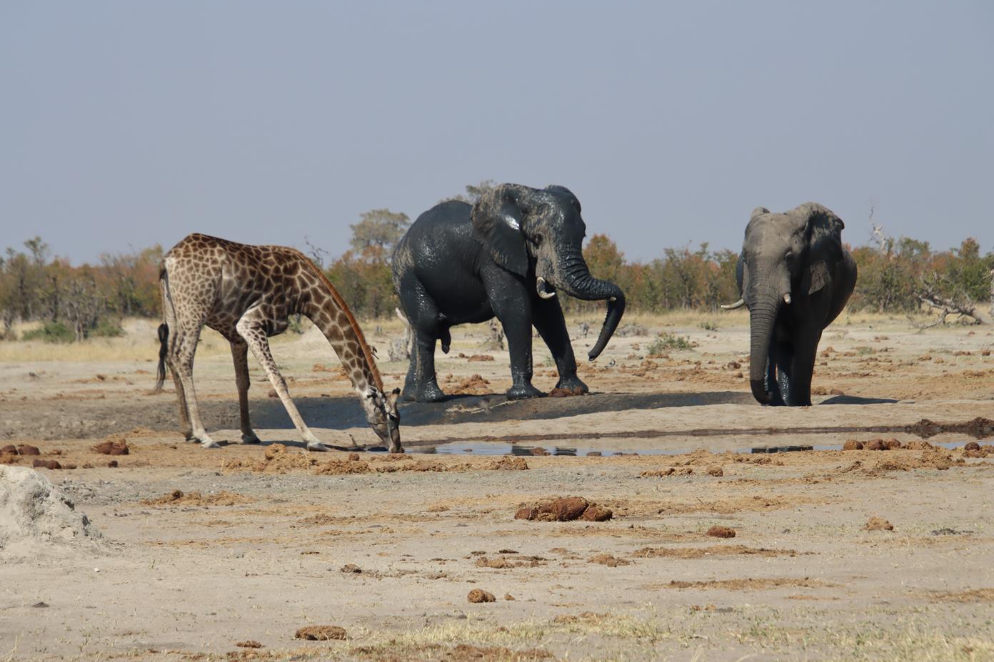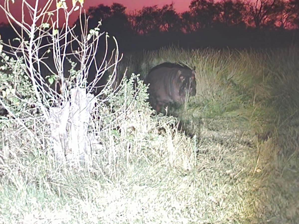 En fin d’après midi, visite de Babar encore, c’est normal et courant au Botswana, mais nous sommes toujours impressionnés surtout depuis que celui de Nxai Pan a plié notre fauteuil !