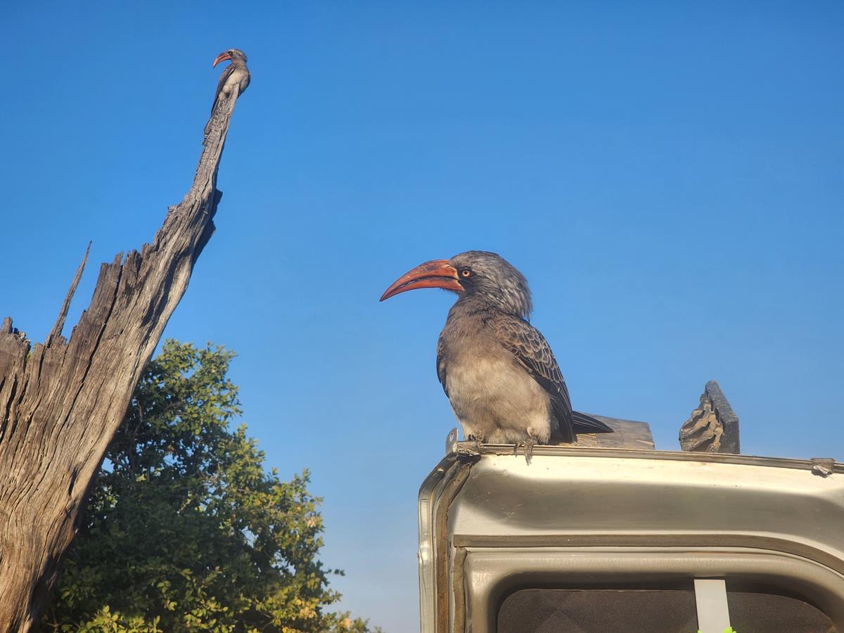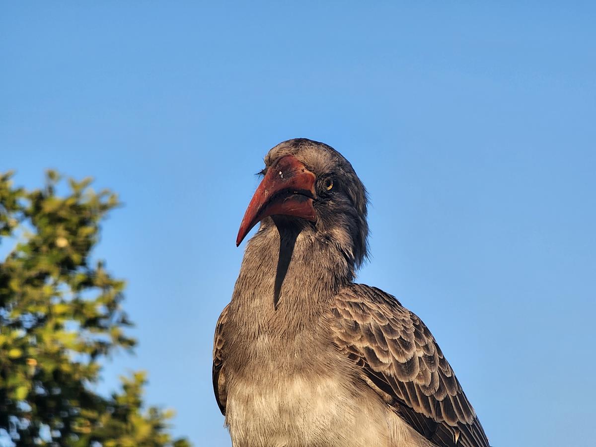 Nous avons toujours nos visiteurs du petit déjeuner. La calao à bec rouge sans doute le plus chapardeur.