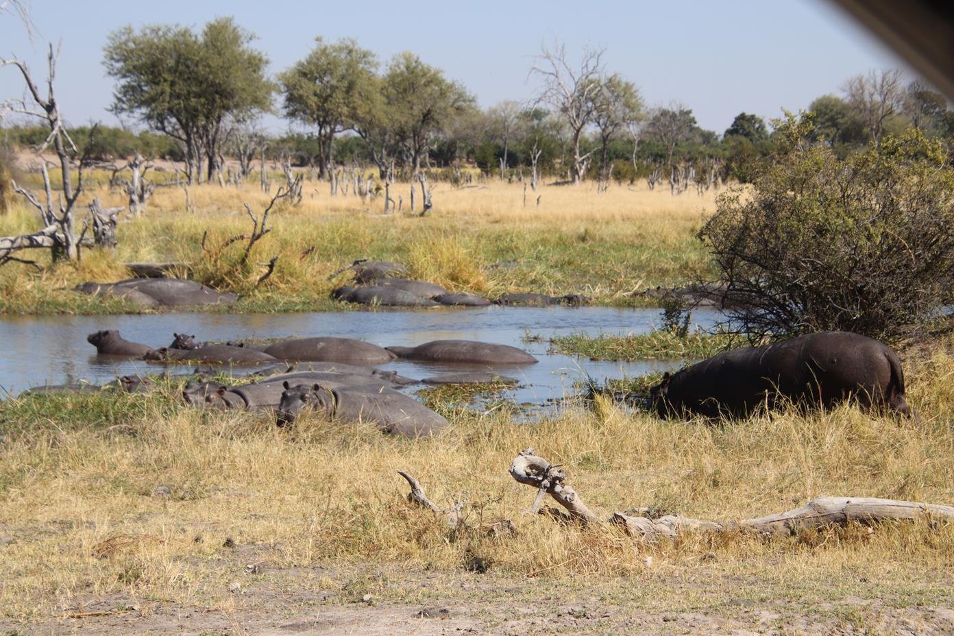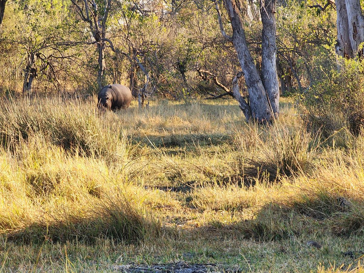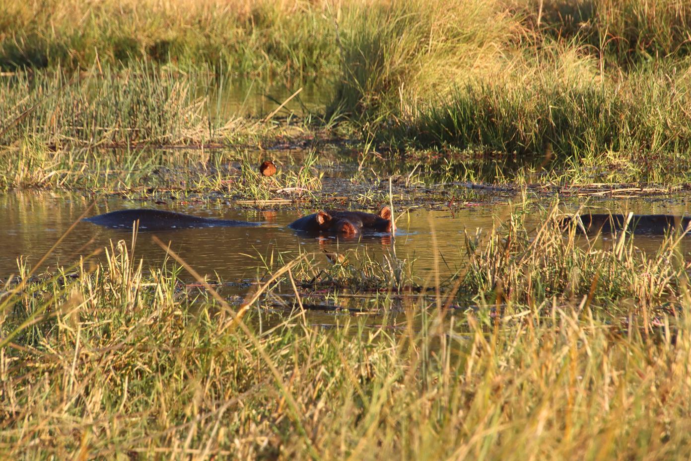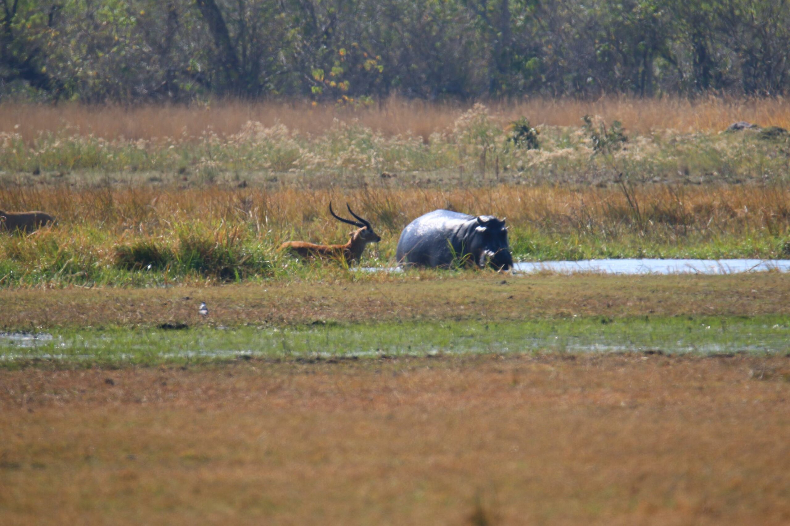 Départ du camp vers Maun en traversant Moremi. L’hippo vient une nouvelle fois nous saluer avant de partir.