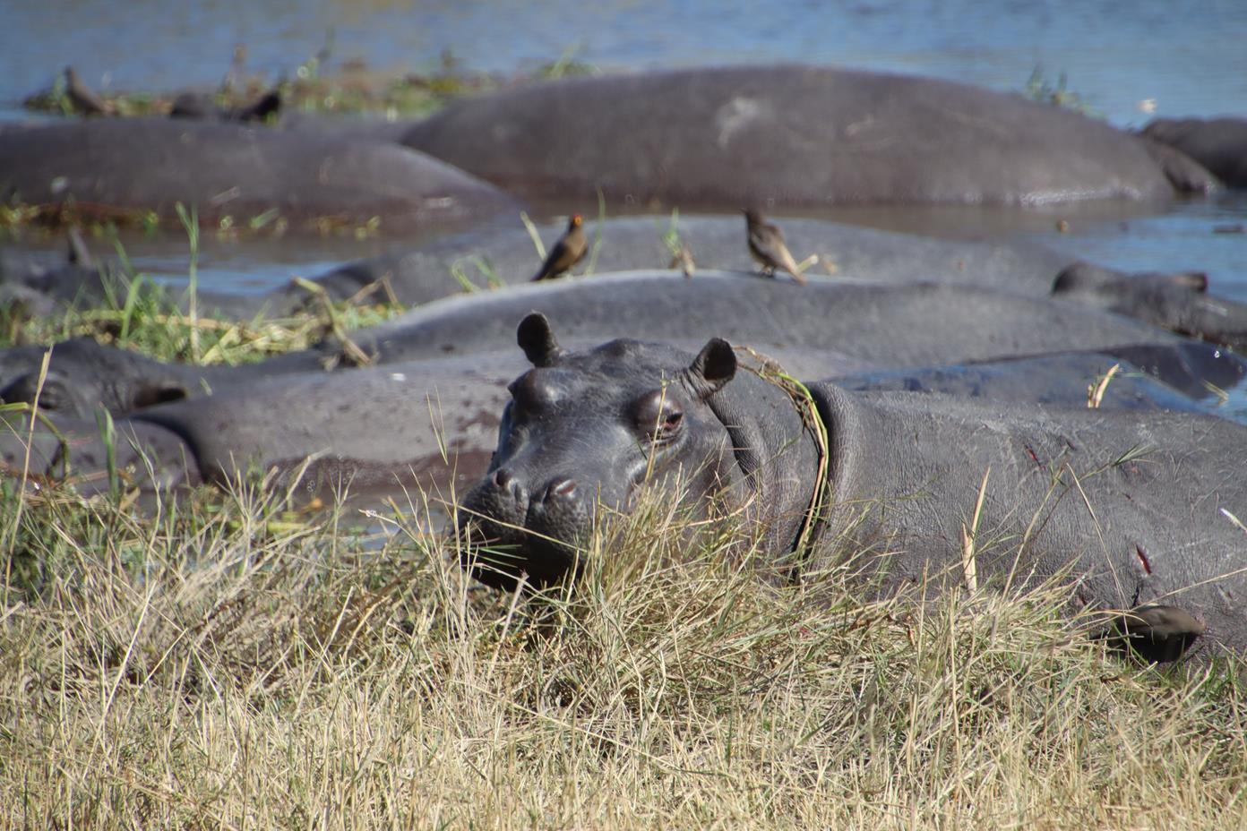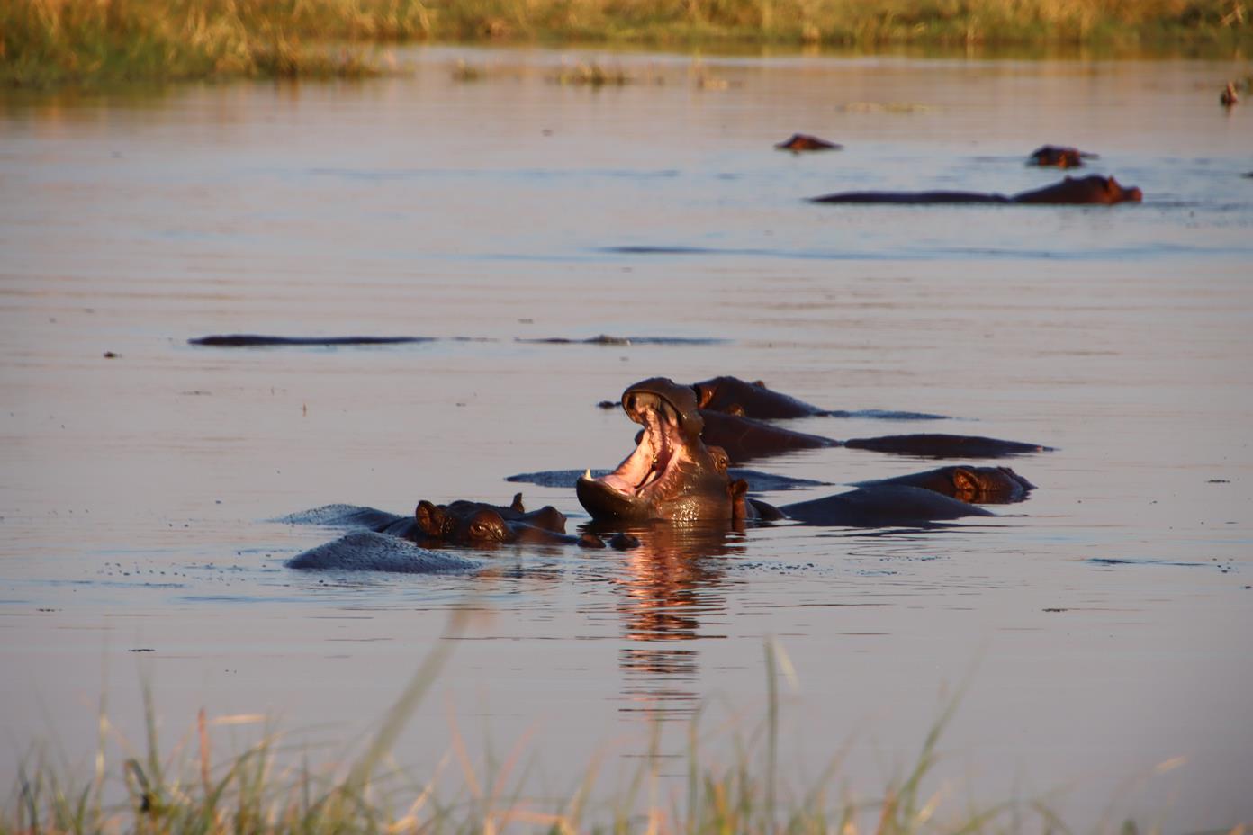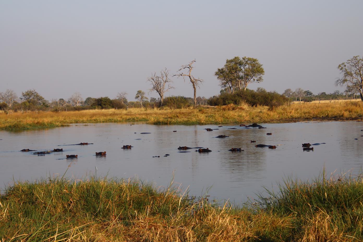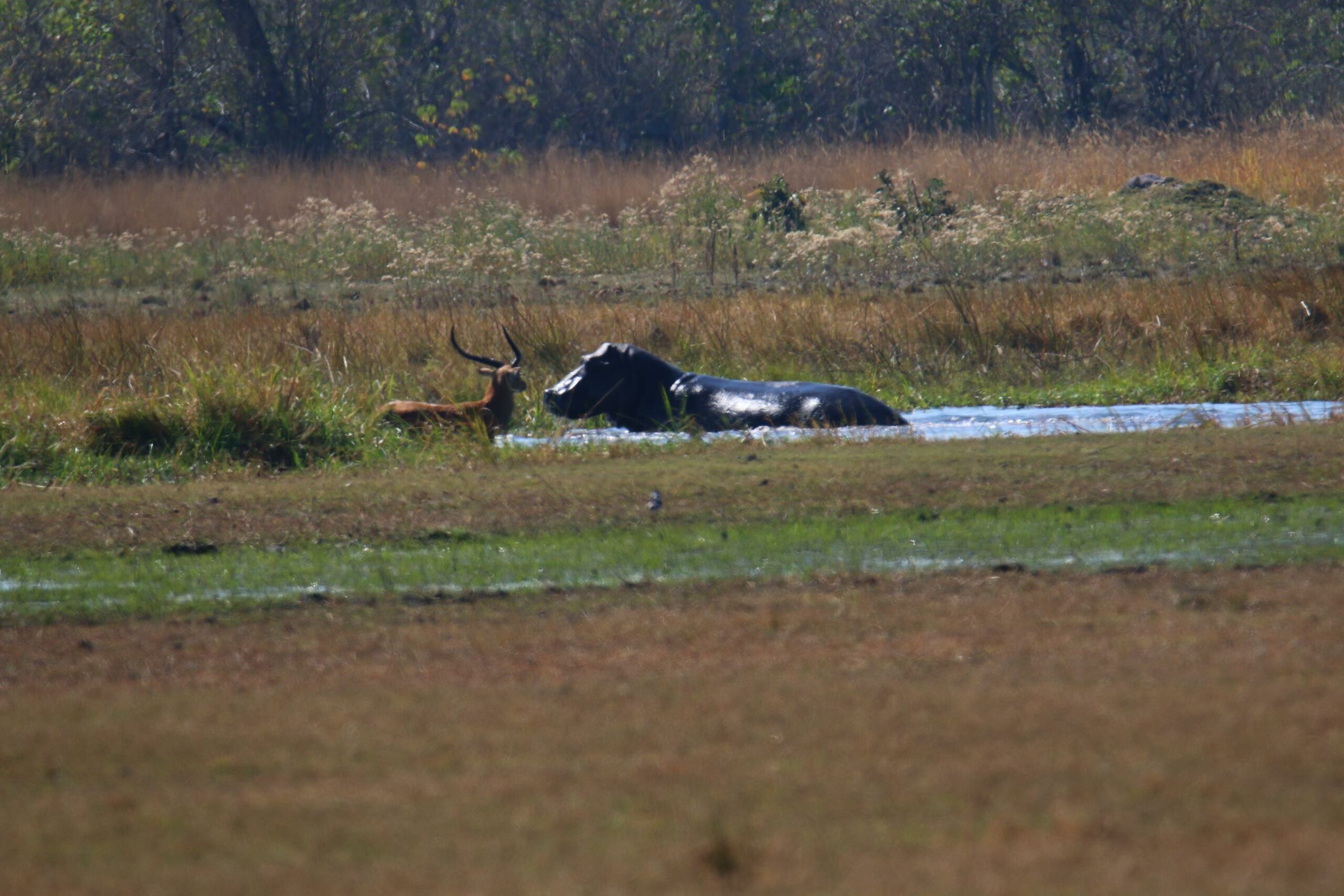 Départ du camp vers Maun en traversant Moremi. L’hippo vient une nouvelle fois nous saluer avant de partir.