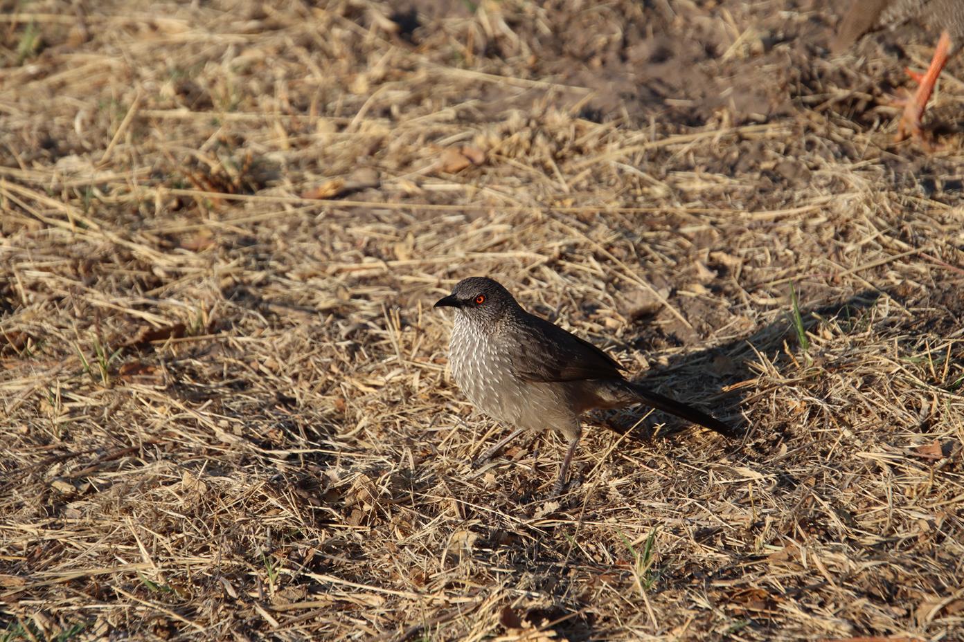 Le Cratérope fléché (Turdoides striata) a un plumage caractéristique. Son dos est brun-olive et son ventre est strié de noir. Cette combinaison de couleurs le rend facilement reconnaissable