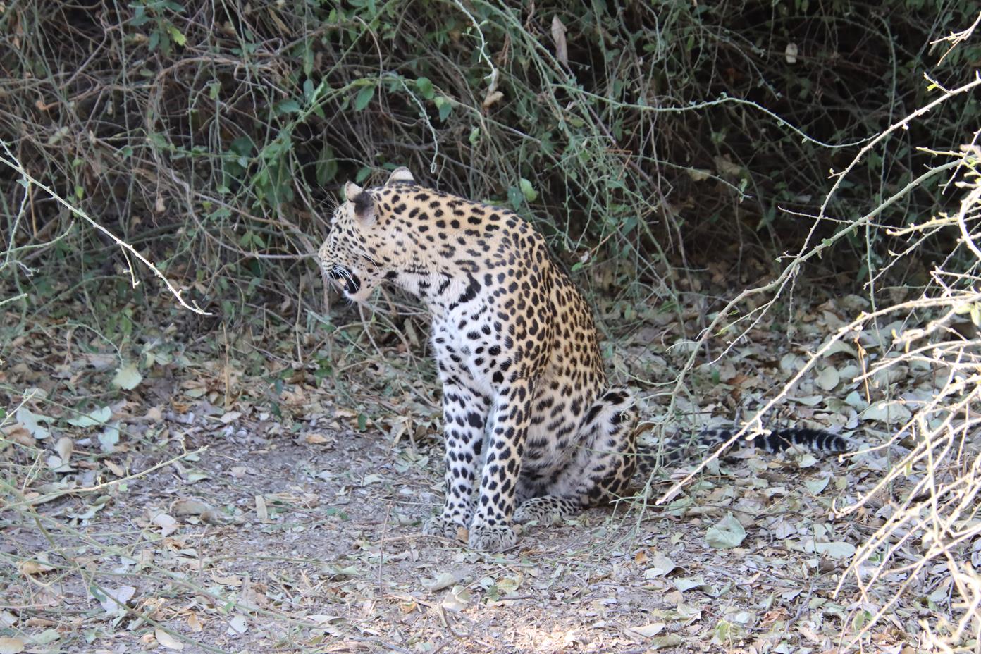 A peine 10 minute plus tard, bam un léopard. Quelques minutes plus tard 6 voitures avec guide arrivent. Notre présence semble agacée certains guides, d’autant que Yannick a été plus le plus futé et nous sommes aux premières loges. Un guide a tenté de passer et a failli se renverser dans un trou d’éléphant. Un autre klaxonne, et alors, nous sommes sur la piste , il veut quoi le monsieur ? Yann gère une nouvelle fois le déplacement du léo et avance en laissant la place aux guides qui s’engouffre derrière nous. Seulement voila Léo nous suit !! c’est dingue et nous sommes encore juste à côté.