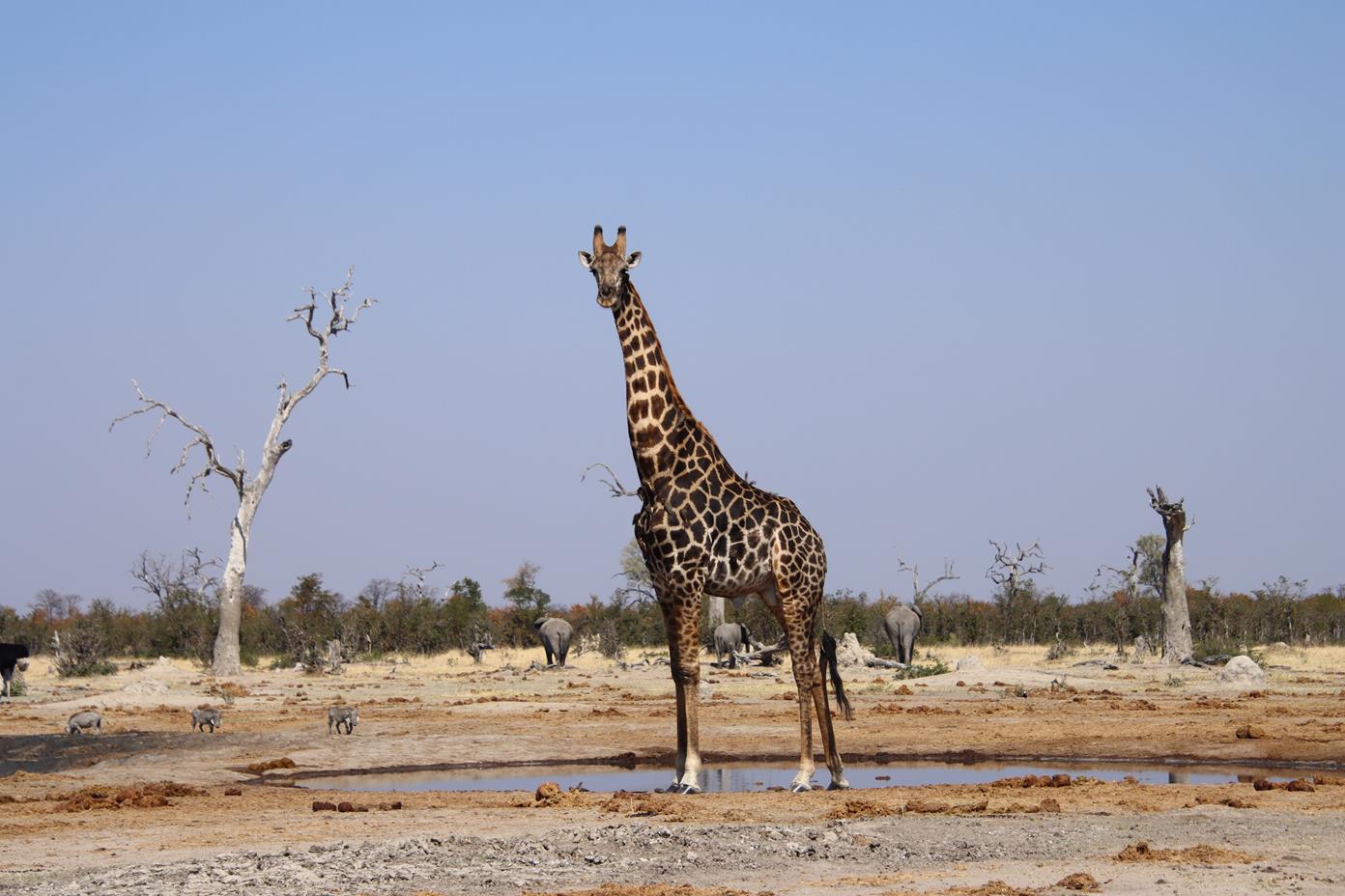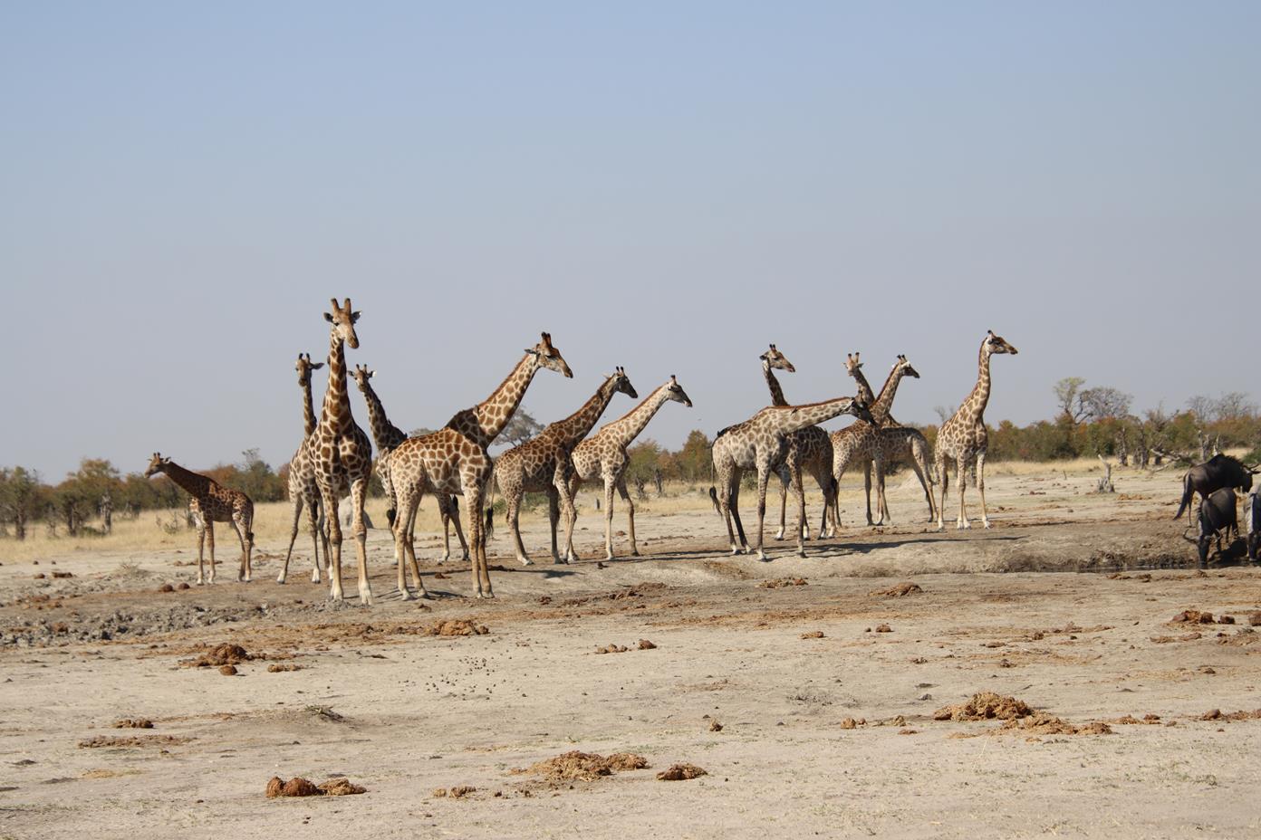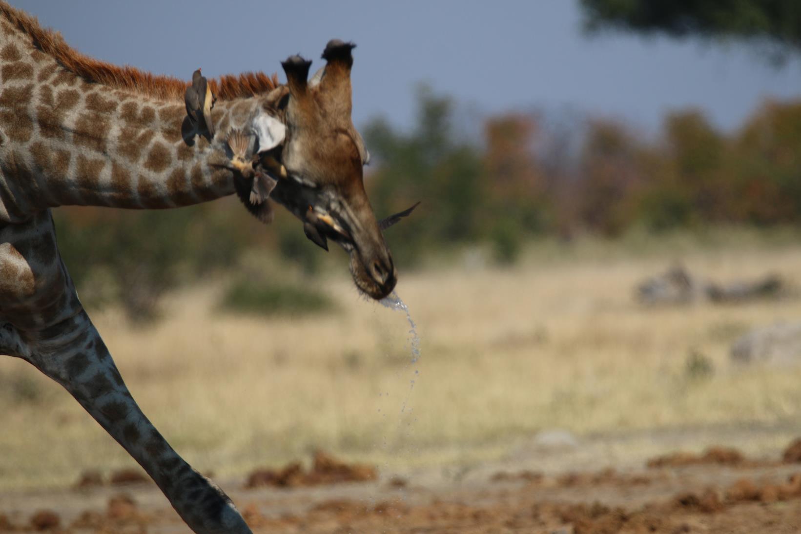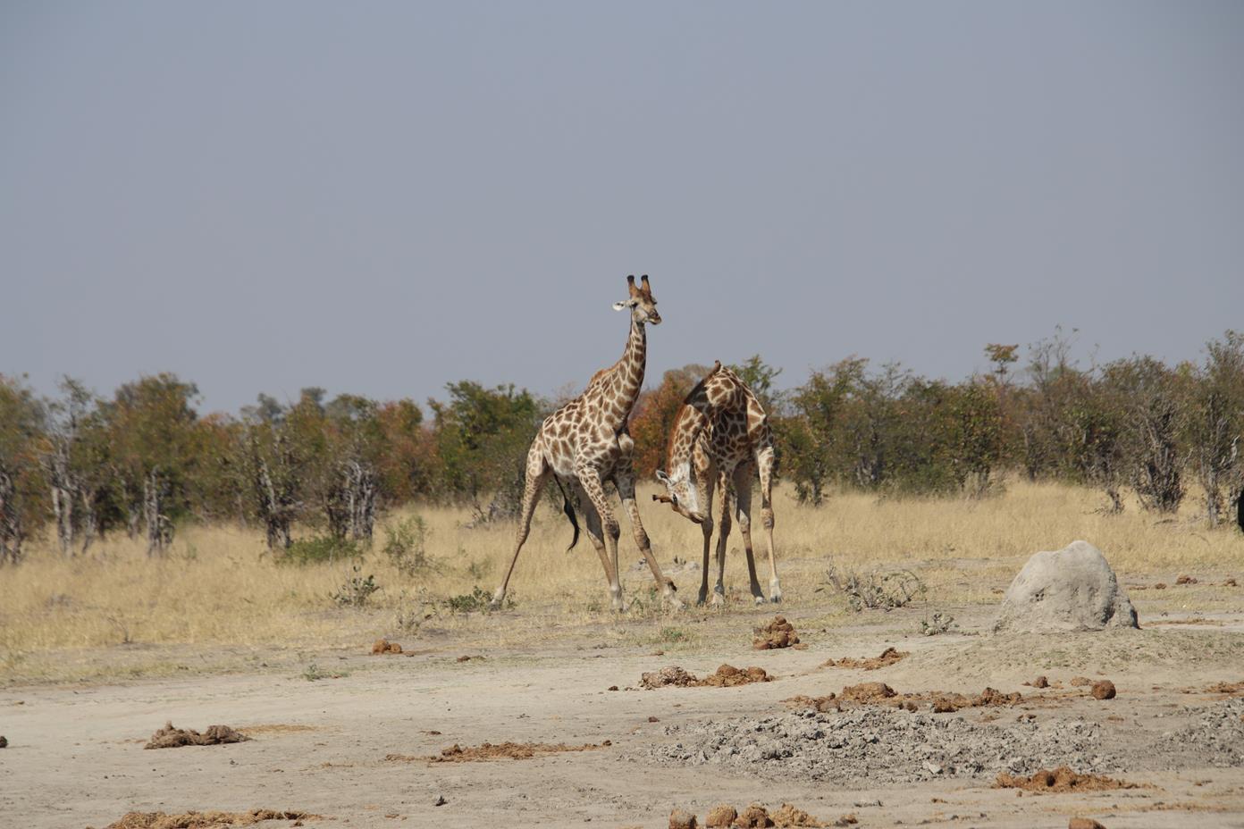 Nous repartons au trou d’eau à côté. Maintenant les girafes s’adonnent à un drôle de jeu