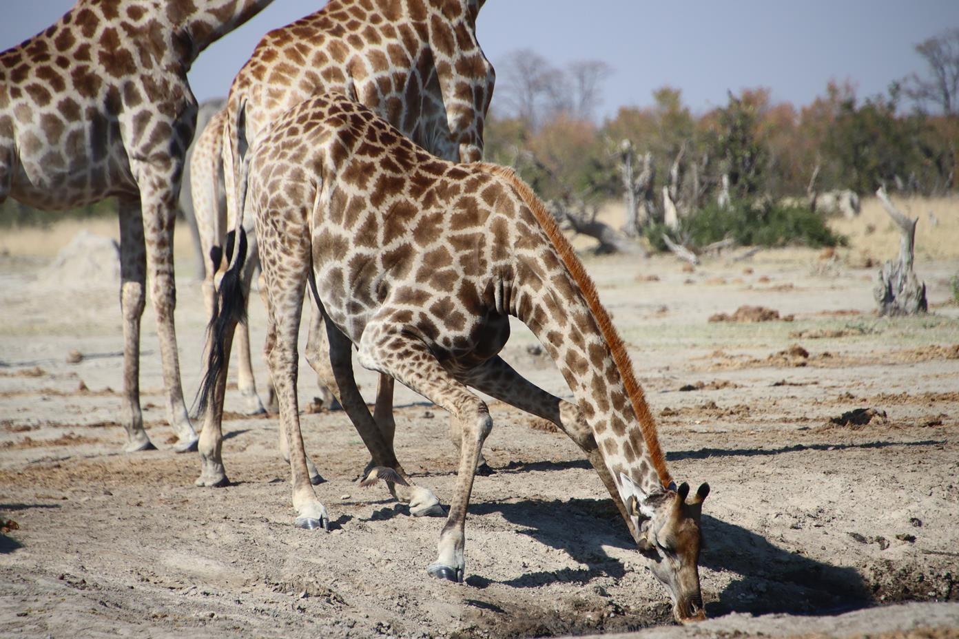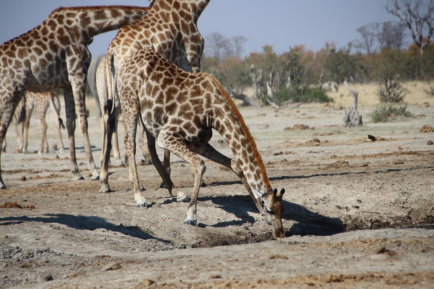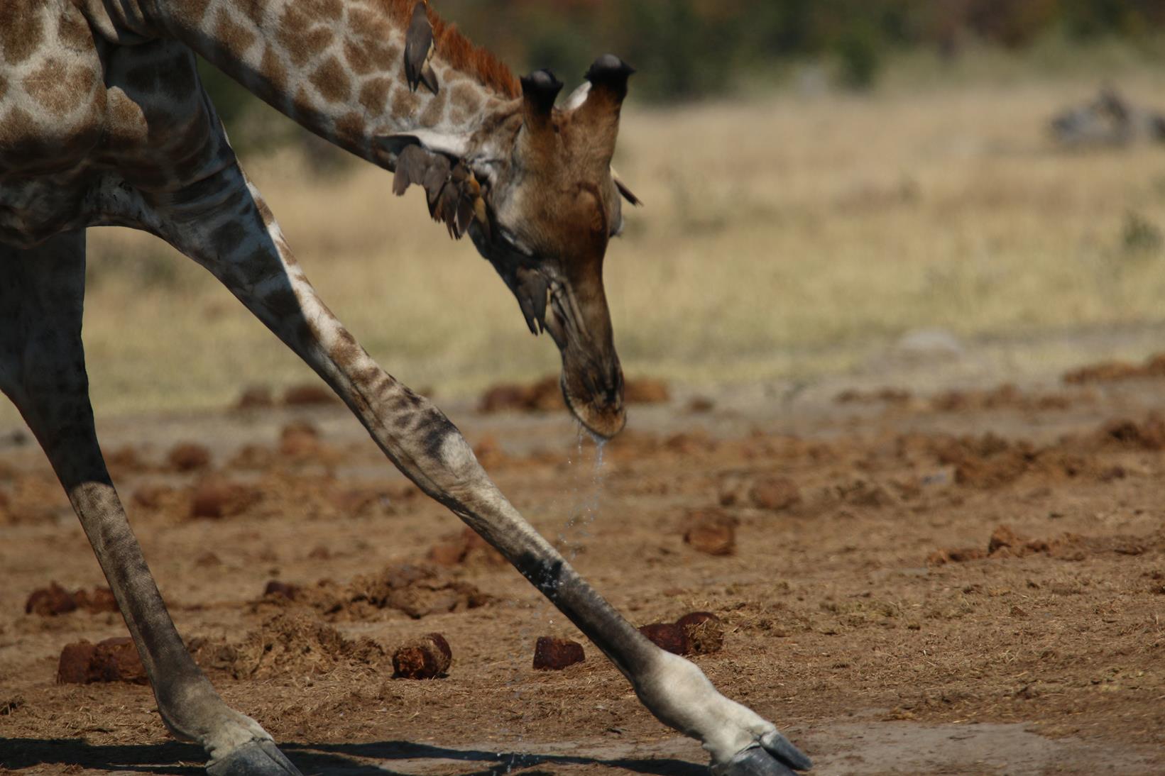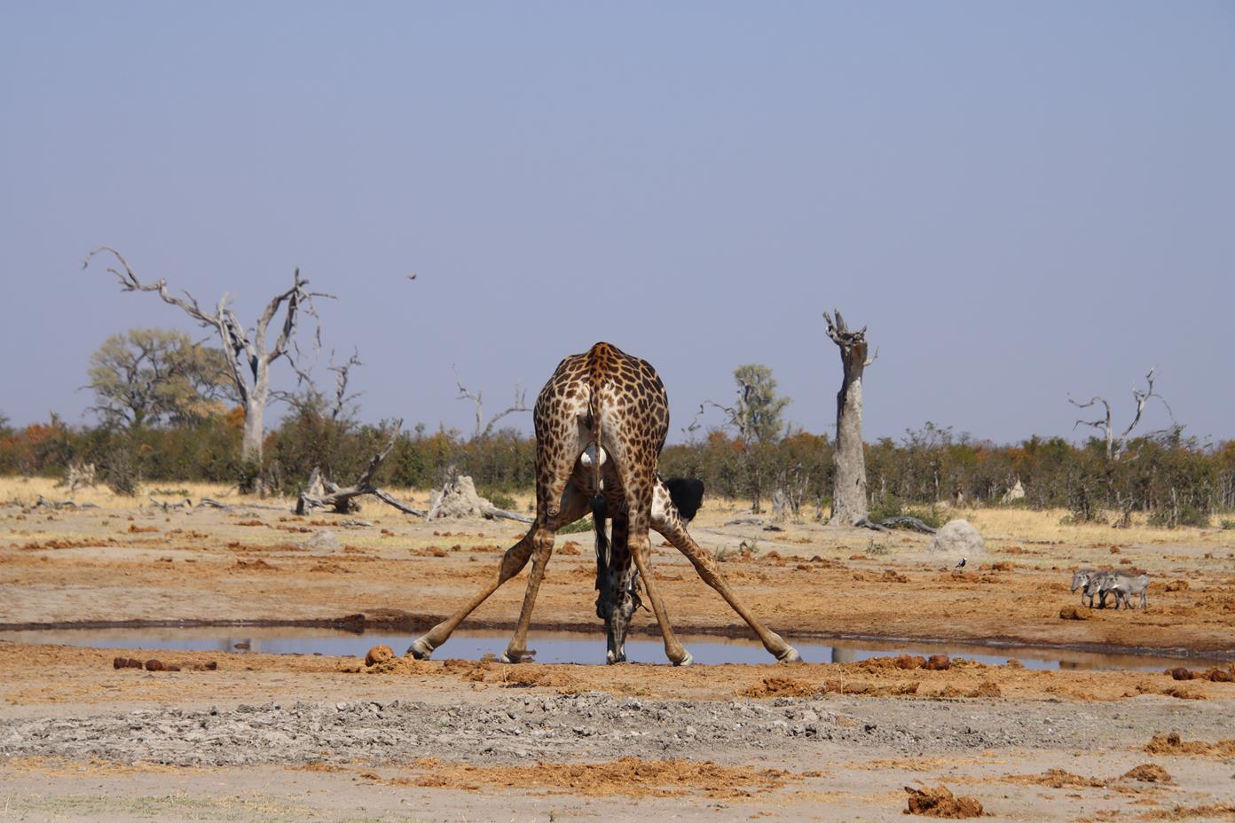Les girafes toujours avec leurs positions acrobatiques pour boire.