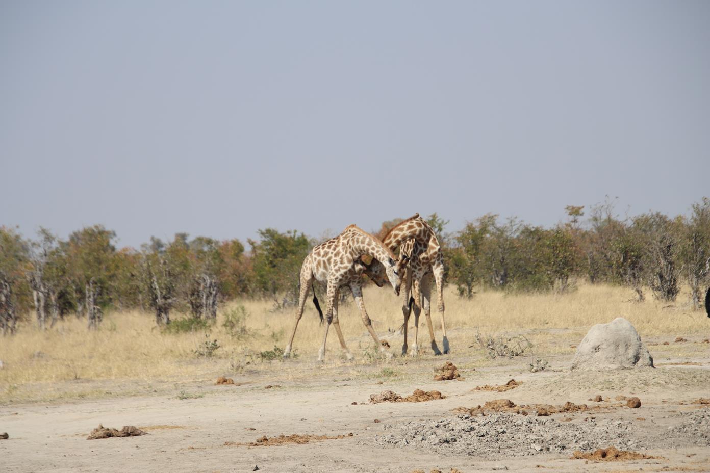 - La reproduction : Pour conquérir sa belle lors de cette période les mâles girafes peuvent se livrer à des combats impressionnants et spectaculaires. Ils se lancent des coups de patte et se battent avec leur cou pour faire tomber leur adversaire et triompher.