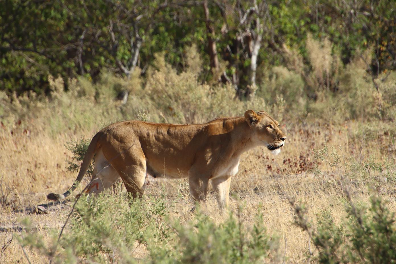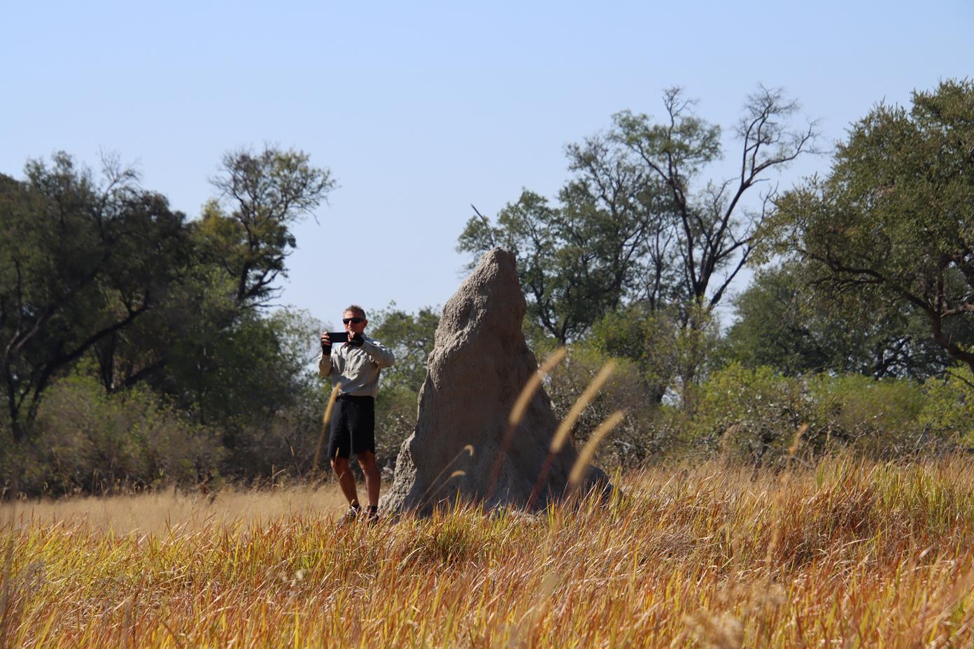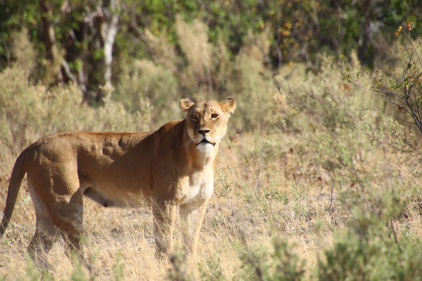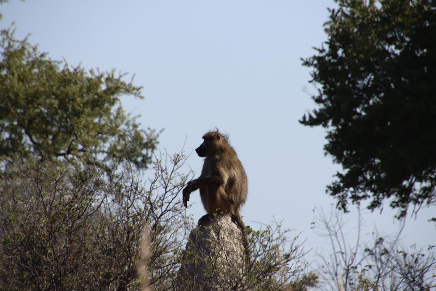 Il ne nous porte aucune attention. Par contre, il est très concentré et fixe sans relâche une antilope qui est à environ 200 m.