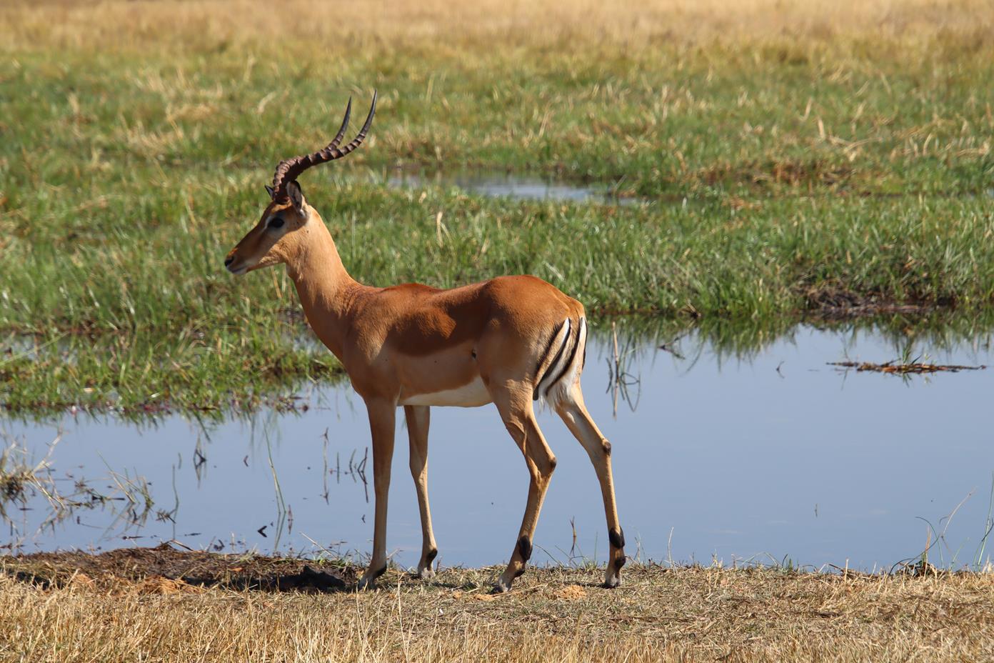 Moremi tu nous gates. Un petit point aussi sur voiture avec guide, aucune comparaison avec Savuti. Ils sont sympas , demandent si tout bien si nous sommes arrêtés bref rien à voir. Quelques antilopes et nous quittons le parc.