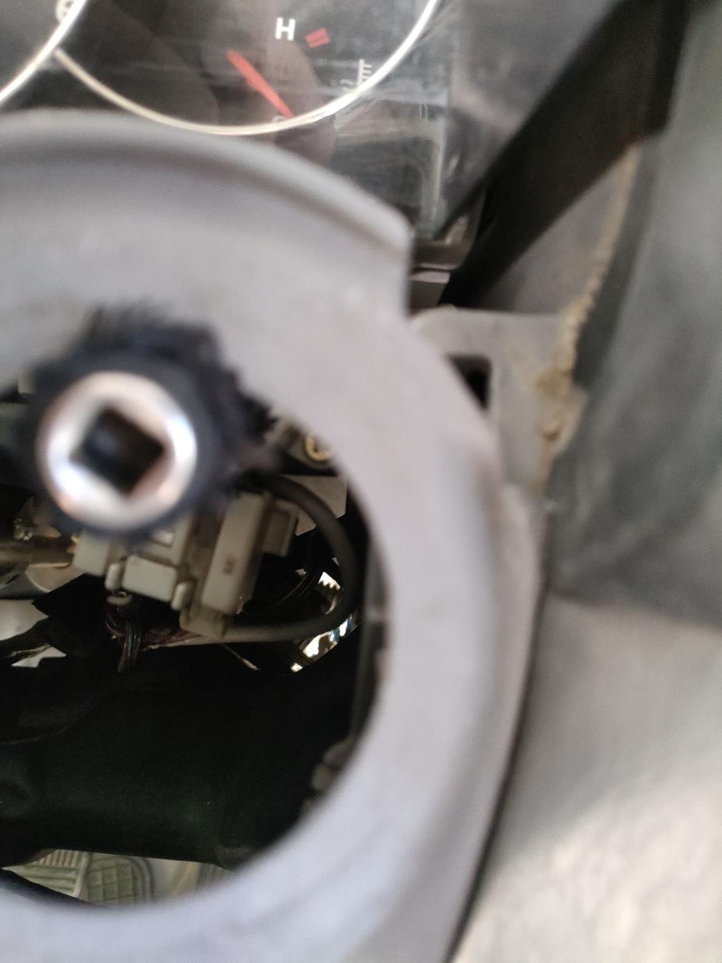 Plusieurs coups de marteau et tournevis plus tard à 10h43 exactement le neiman est débloqué. Ouf, seulement on ne peut pas retirer la clé , elle doit rester seulement en position accessoires, sinon paf, ça bloque.