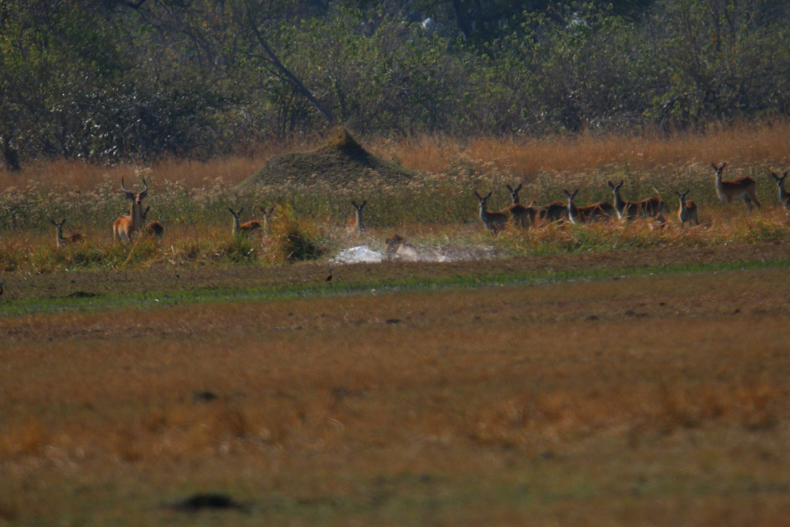 Ça continue, il sort à nouveau et replonge. Là, il semble qu’il attrape sa proie sous le regard des autres antilopes.