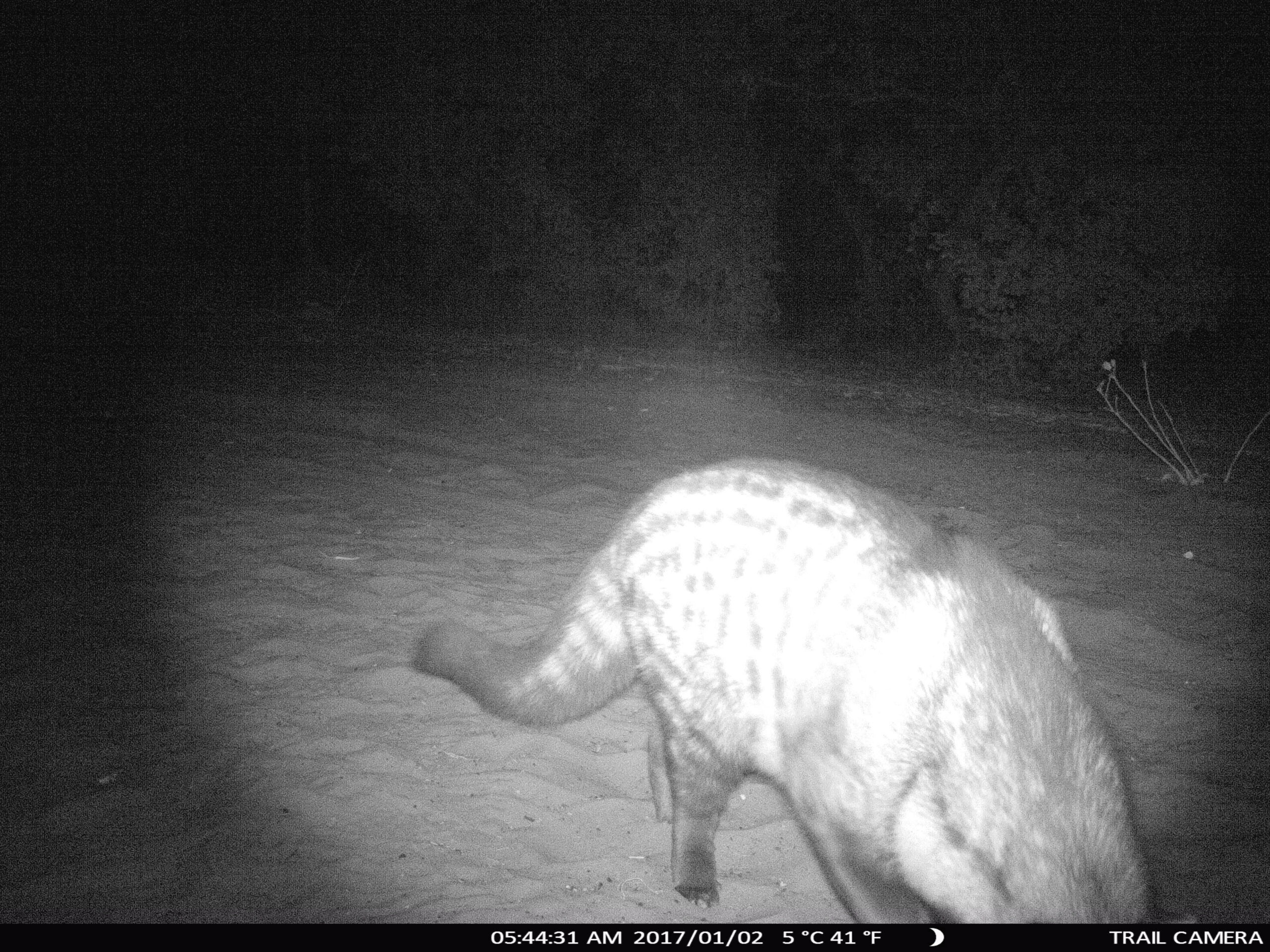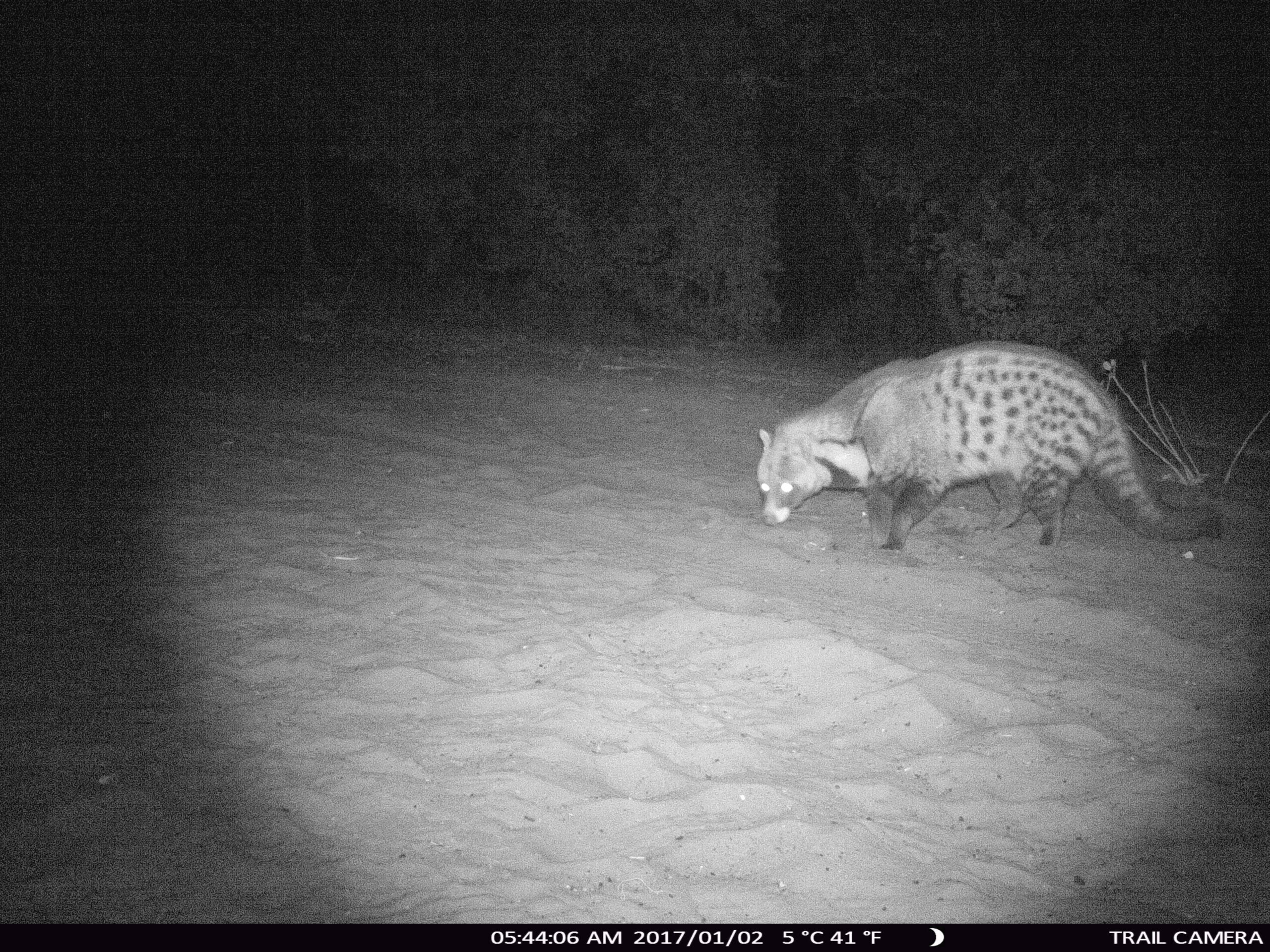 Alors qui est venu hier soir, voyons un peu …mais qu’est-ce que c’est ? D’après mes recherches ça serait une civette , je ne pensais pas que c’était aussi gros. Si je me trope dites le moi.