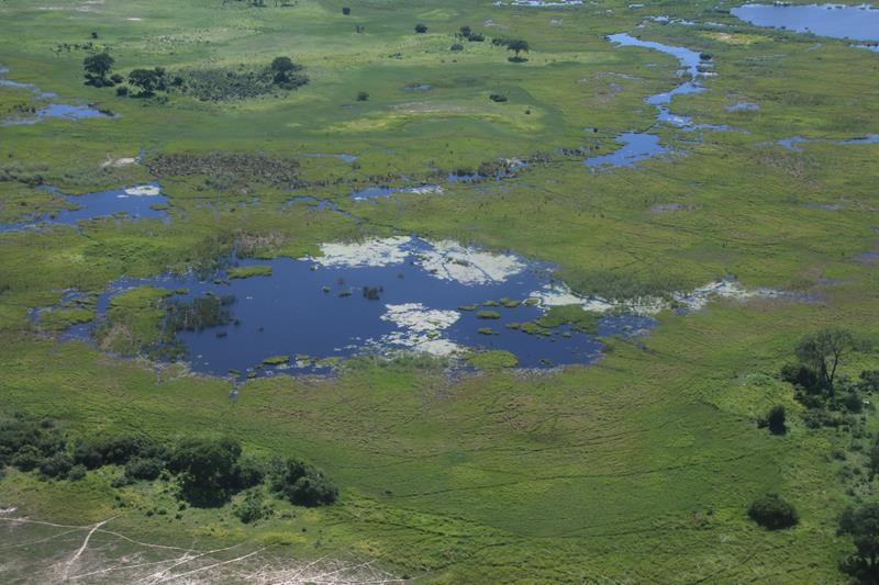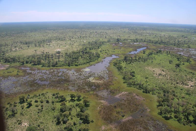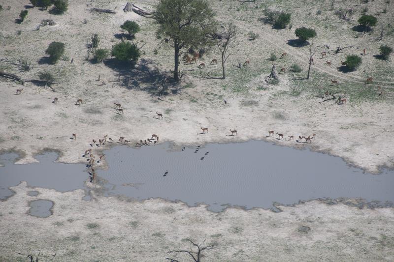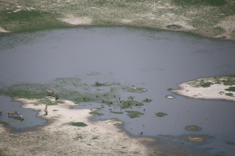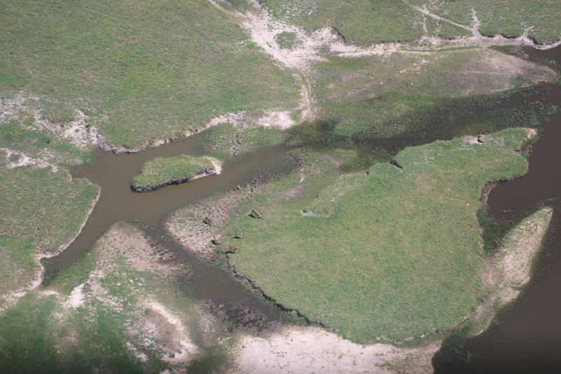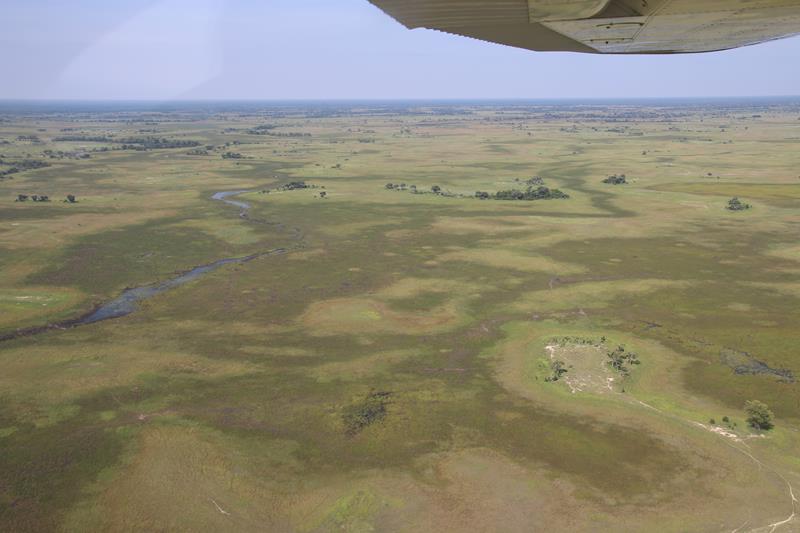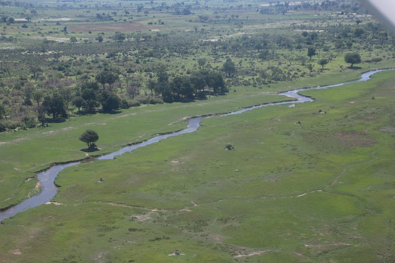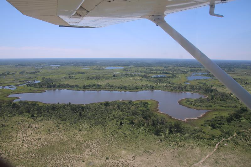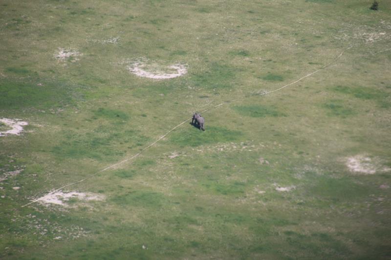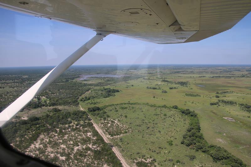 Finalement nous décollons et enfin les 1ers éléphants, girafes …. Nous les survolons à une distance règlementaire pour ne pas les effrayer donc pas facile à voir. Le paysage est superbe. Nous apercevons les pistes, qui pour certaines, traversent des marécages, Hummm plus sympa d’en haut !