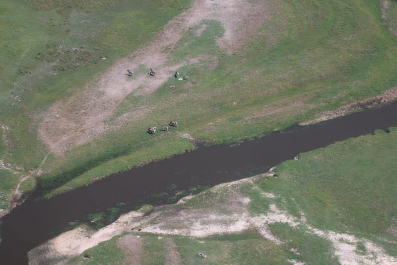 Retour après 55 minutes, c’était très beau mais le constat est implacable : manque d’eau ! Même dans cette région et ce ne sont pas les quelques orages que nous avons eu qui vont remplir tous les étendues qui doivent l’être en cette saison. Le pilote nous le confirmera.