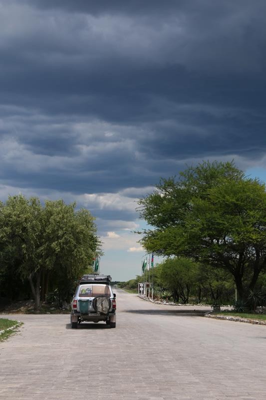 Grootfontein, rien pas de treuil, ni plaques de dessablage, en plus, il pleut. Nous sommes contents de voir la Namibie sous la pluie. La végétation explose c’est superbe.