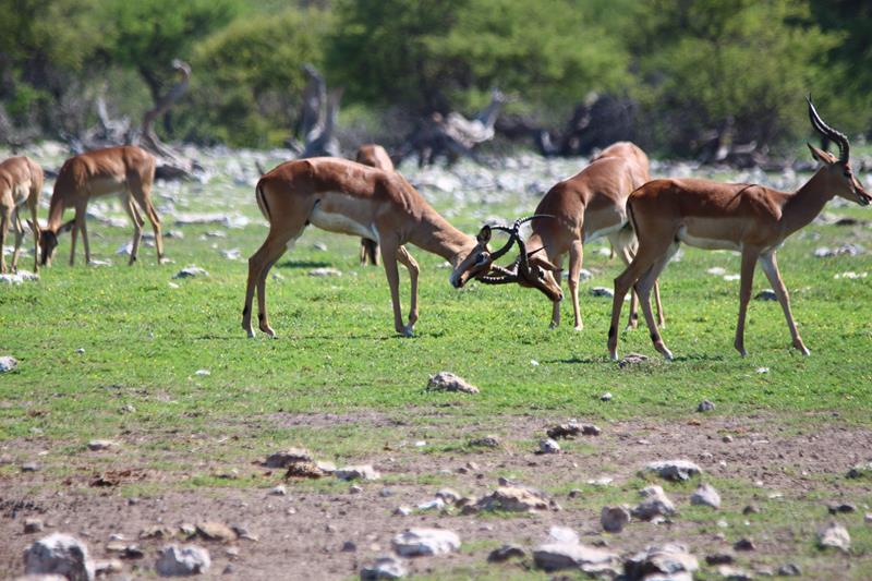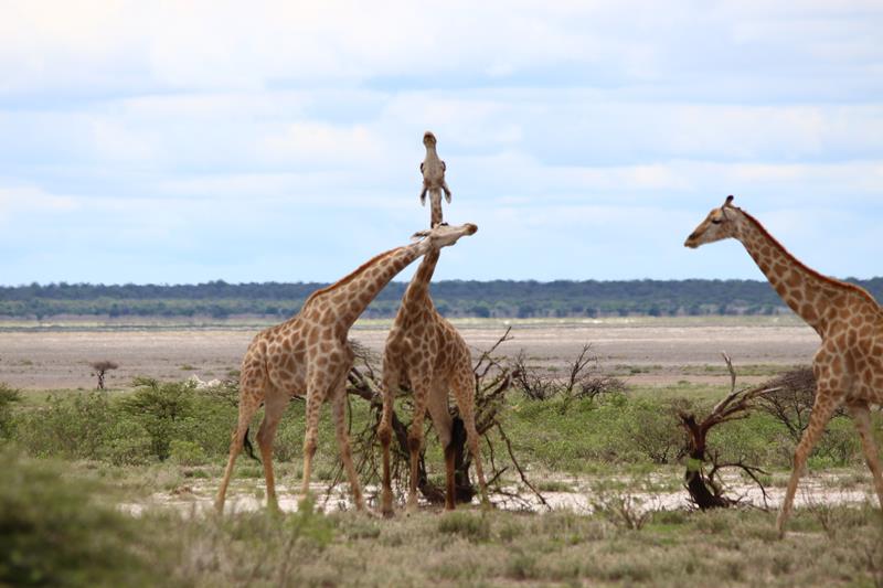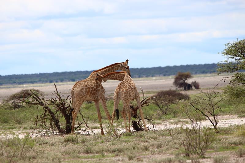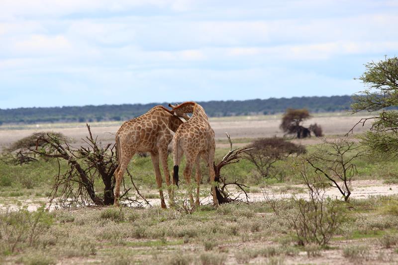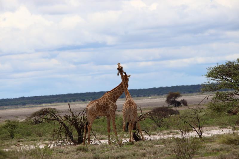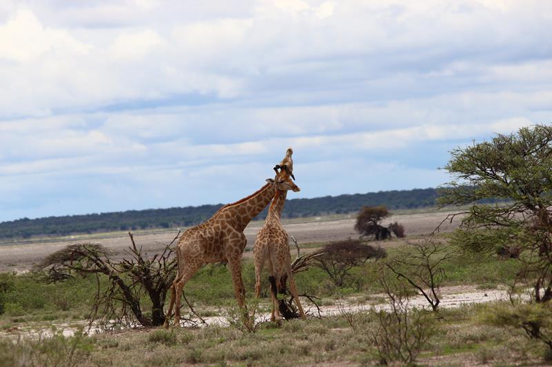 « Bolchoï Etosha ». Quelques fois avec de longues distances sans rien voir comme les longueurs d’opéra russe et soudain l’air que tout le monde connait arrive, les girafes qui font une danse de séduction sous nos yeux.