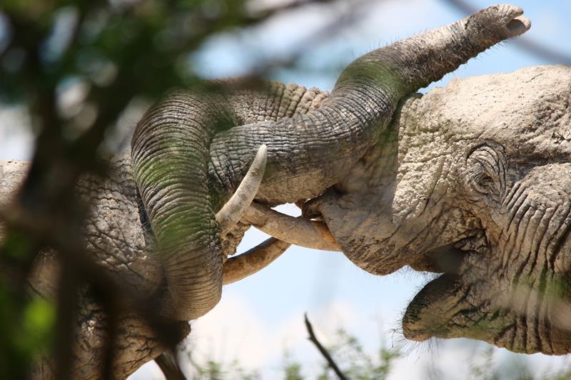Et ça reprend, l’air connu, deux éléphants qui se courtisent, les trompent s’entrelacent, ils se frôlent tendrement et délicatement. Yann et moi, nous nous regardons  émerveillés. Ils repartent dans le bush