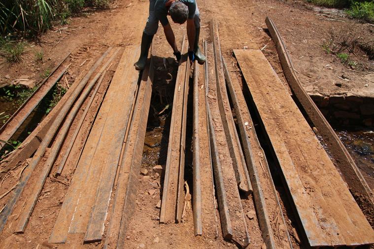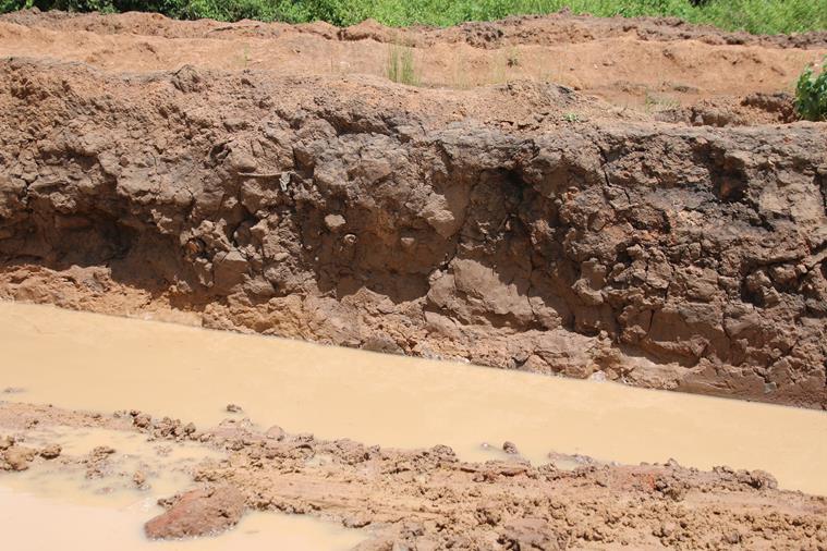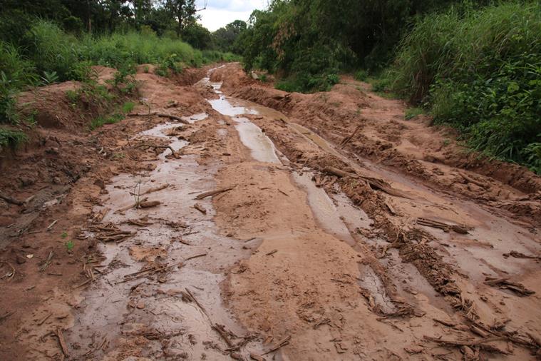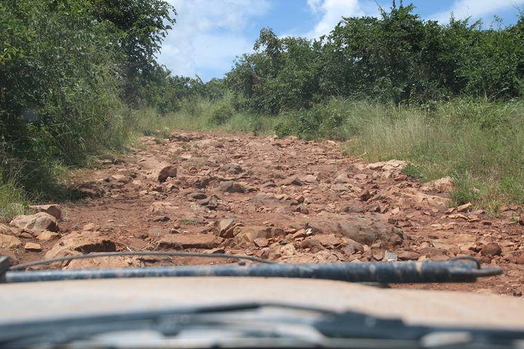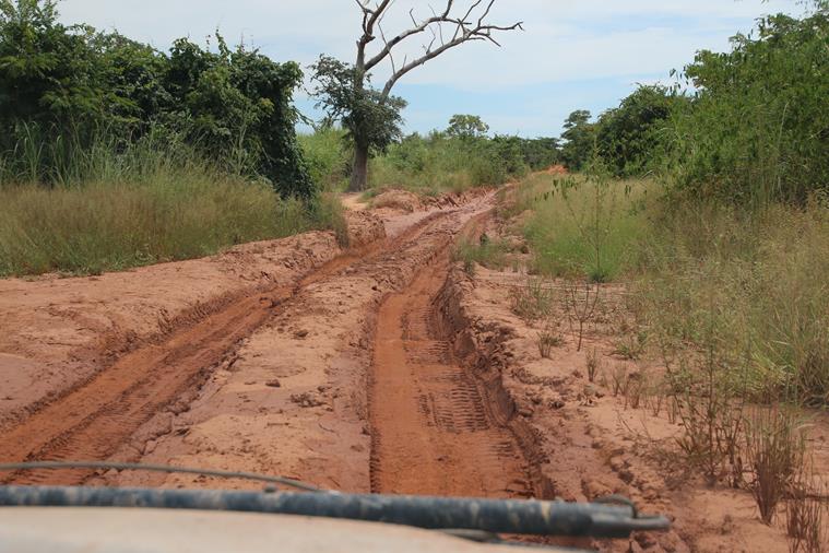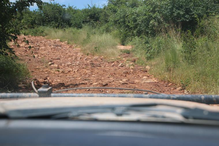 3 « notables » arrivent et conseillent de passer par la piste qu’ils ont aménagée juste à coté et qui est, bien entendu, fermée par une barrière. Yann regarde la piste, elle est pleine de morceaux de bois, de pierres etc…. Il recommence ses sondages et pendant ce temps je ….converse avec les notables. Ça commence : et d’un, « vous ne devez pas passer par là, il va casser le carter ». Et de deux, » il va casser la barre de direction ». Et de trois, « madame nous souffrons beaucoup il faut nous aider et nous donner de l’argent » et de quatre, ….. stopppppp… allez voir le chef la bas !
