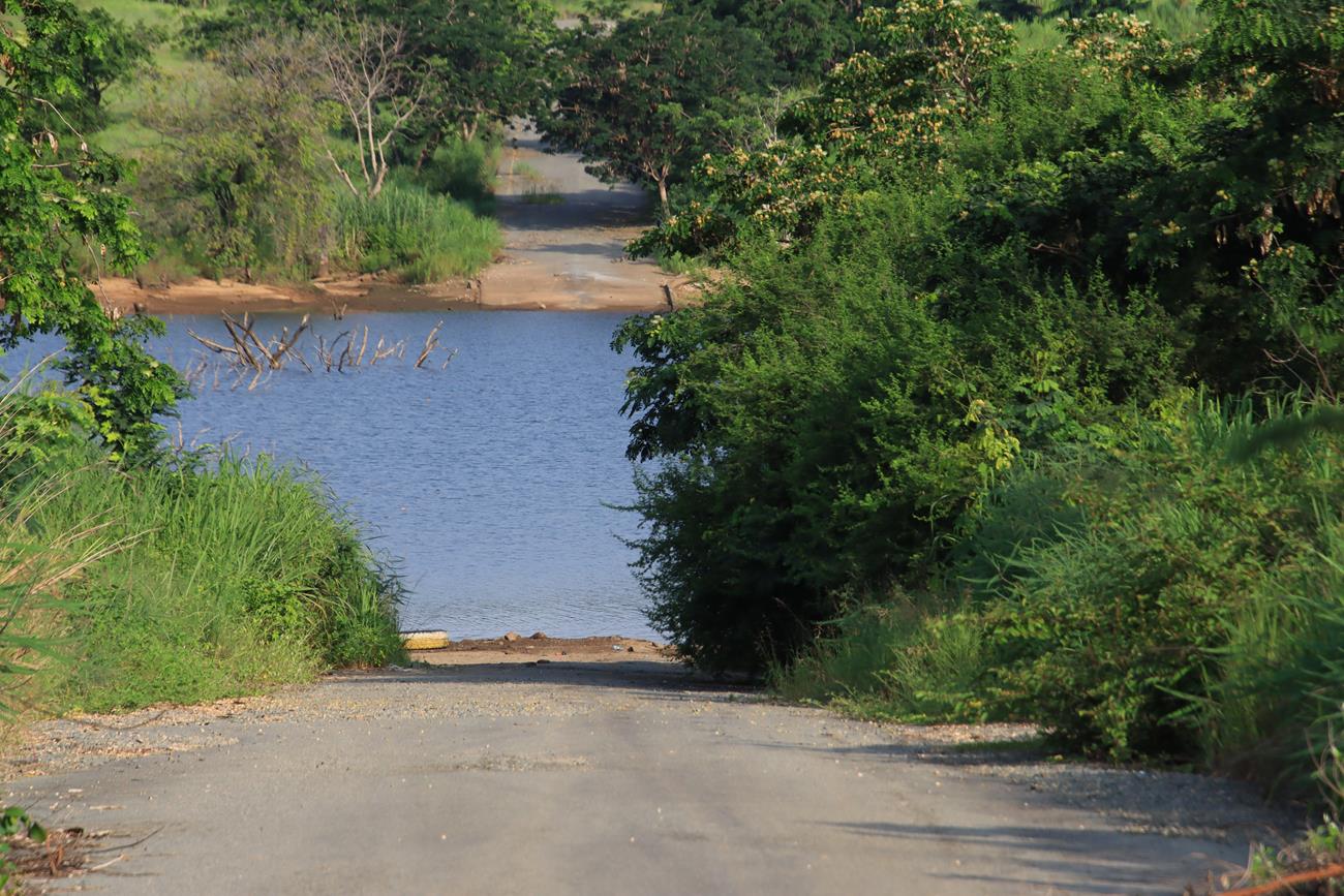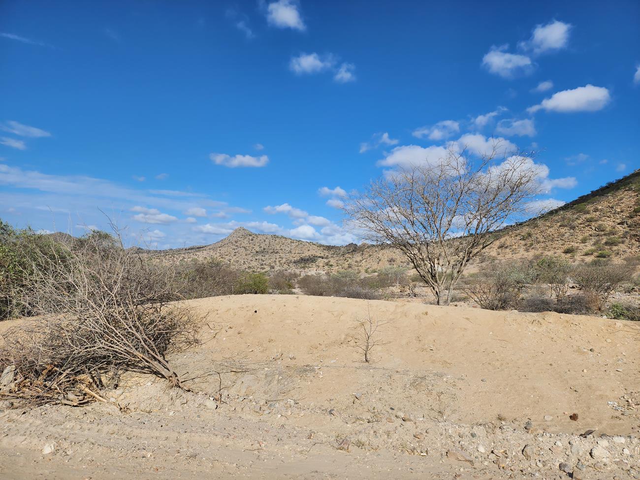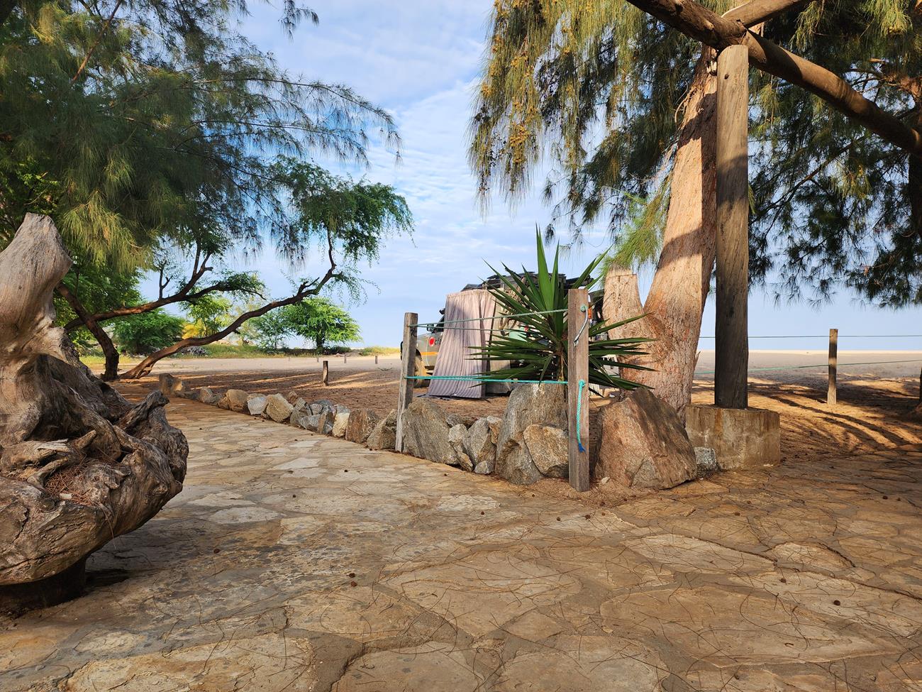 Nous nous dirigeons vers la baie de Binga pour y camper. Plusieurs kilomètres de piste ondulée horrible. À 17 h 40 nous arrivons à une barrière et un poste de contrôle.