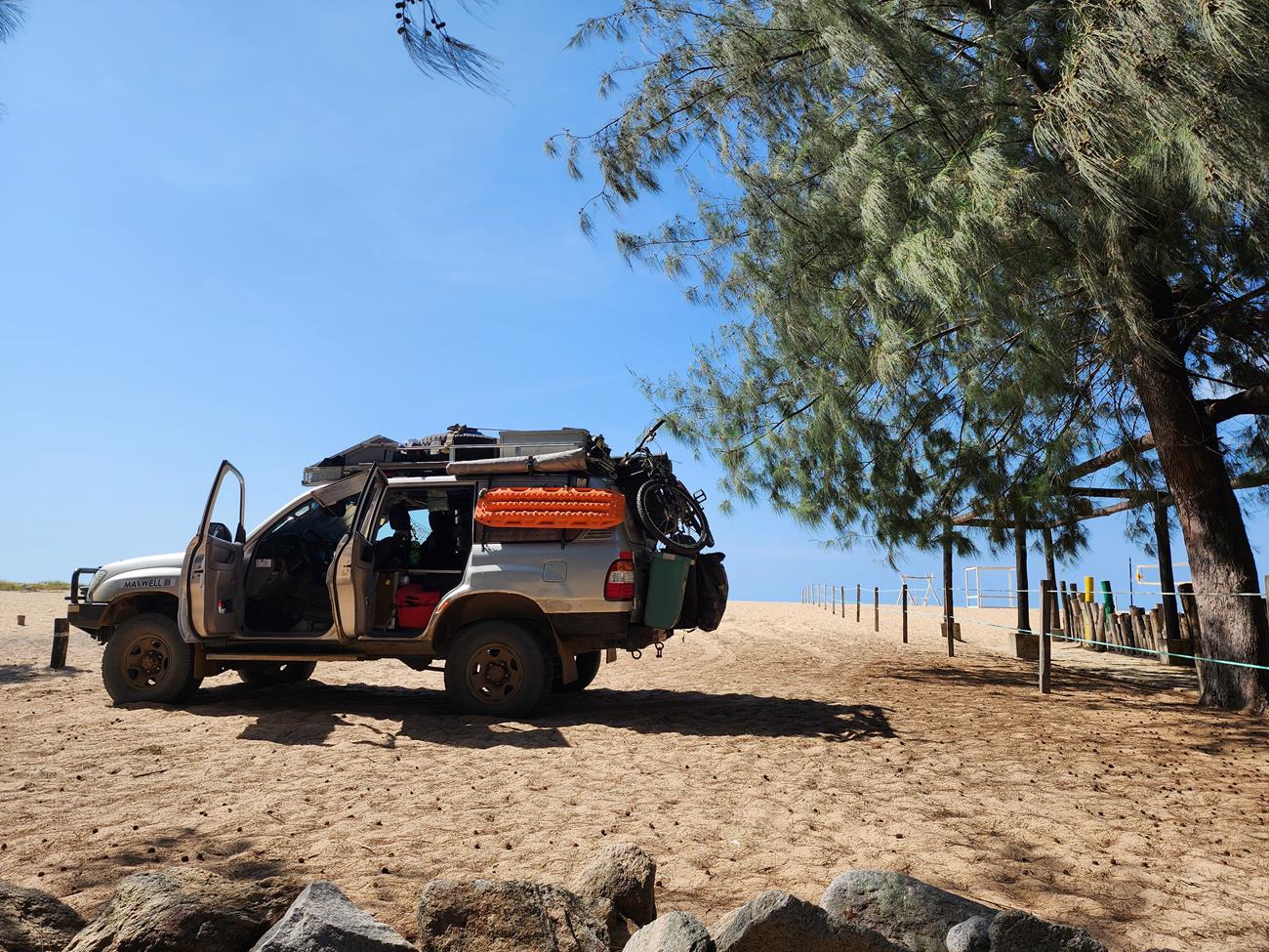 Et lorsque l’on aperçoit le demi cercle de sable friable devant la voiture, on se dit qu’il ne doit falloir y aller trop souvent avec un véhicule lourd!